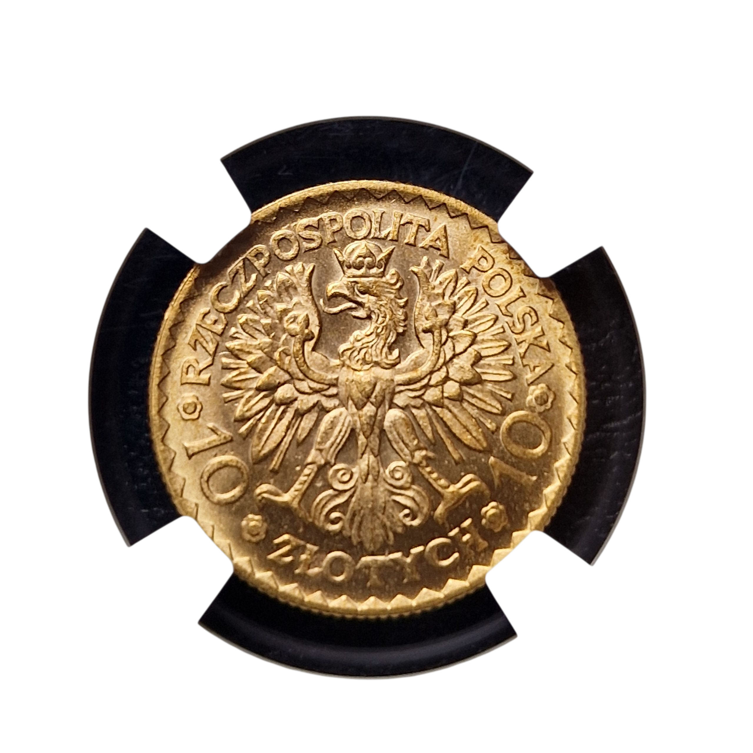Polska II RP 10 zł 1925 r. Bolesław Chrobry, wysoka nota NGC MS 65,egzemplarz bity świeżym stemplem, jak lustrzanka,dobra cena jak za egzemplarz o takim połysku, moneta w slabie NGC . złoto -Au.900, waga 3,23 g, średnica; 19 mm, rant; ząbkowany.Monety są w pełni autentyczne, oryginalne, są przez nasz sklep kolekcjonerski Gryf pozyskiwane od prywatnych kolekcjonerów, na aukcjach ogólnopolskich domów aukcyjnych, targach staroci zakupów dokonujemy osobiście co gwarantuje wysoki stan i autentyczność przedmiotów. Zakup monet kolekcjonerskich czy innych przedmiotów historycznych jak bagnety, porcelana, kryształy wazony szklane i kryształowe to bardzo dobry sposób na inwestycję, ceny tych przedmiotów ciągle rosną , zwłaszcza monet II RP 1016-1945 szczególnie złotych takich jak Bolesław Chrobry, monety te oferowane są przez nasz sklep Gryf w slabach / pudełkach NGC co dodatkowo podkreśla ich autentyczność i stan zachowania, zachęcamy do skorzystania z oferty naszego sklepu kolekcje i numizmaty GRYF. Polecamy do najlepszych kolekcji oraz jako inwestycję.