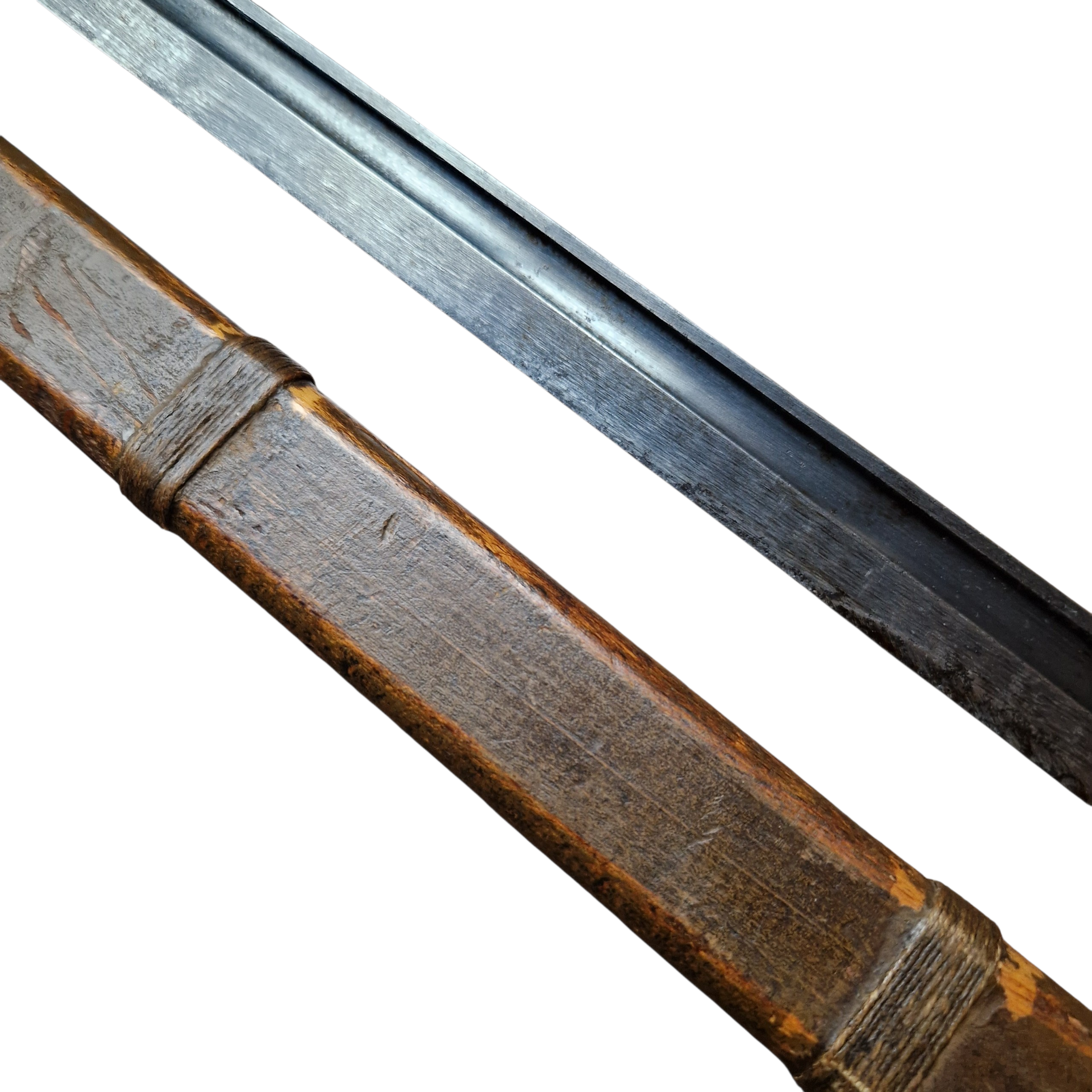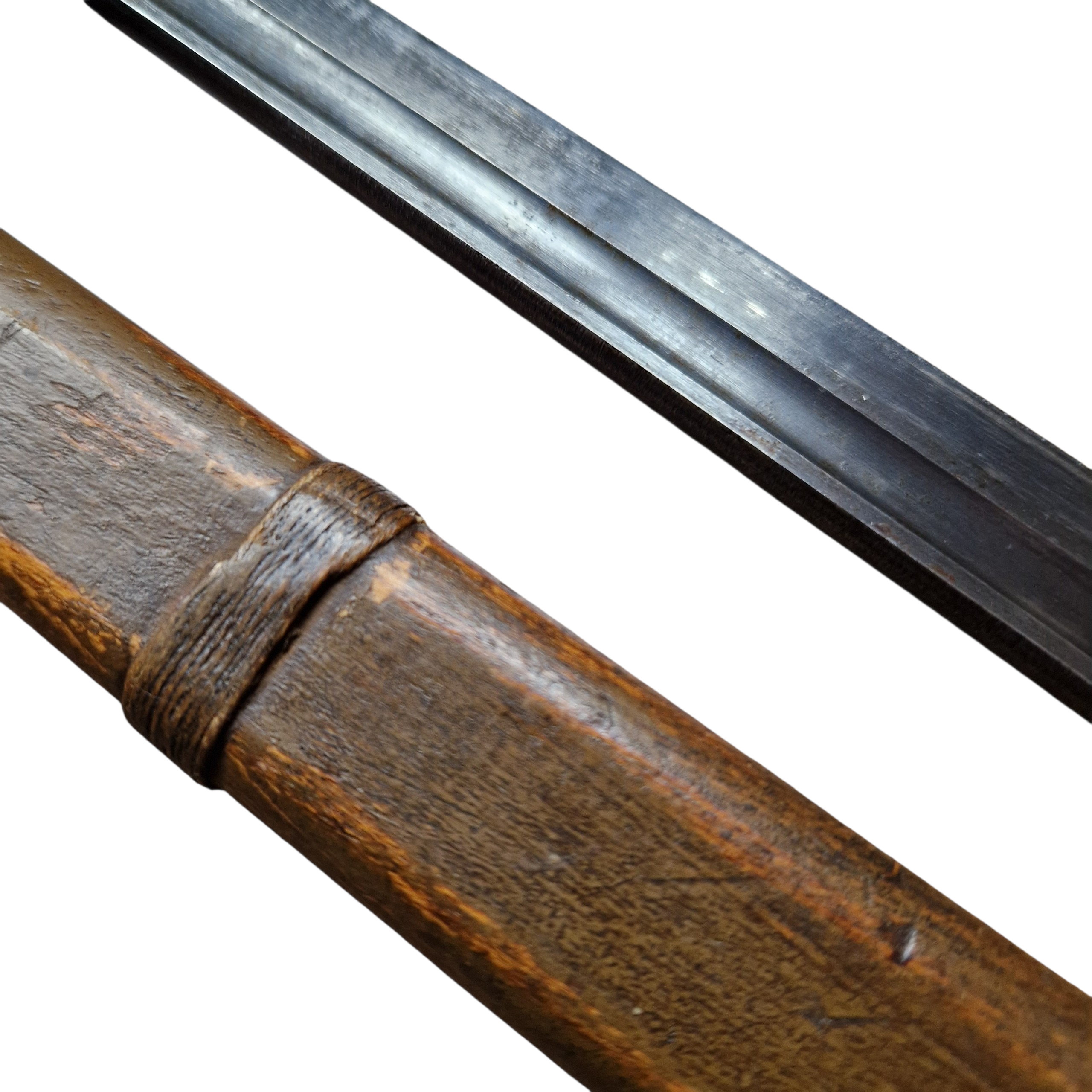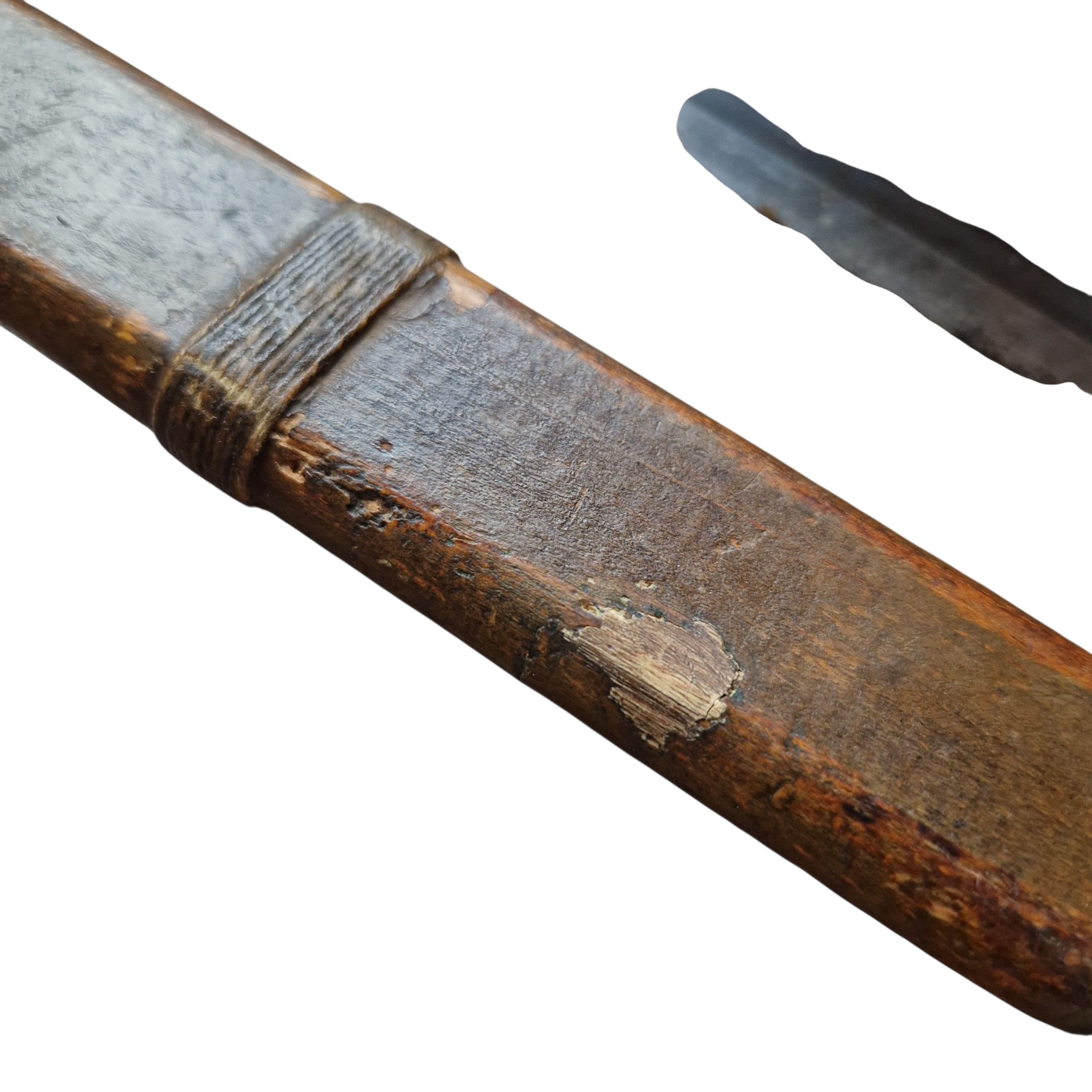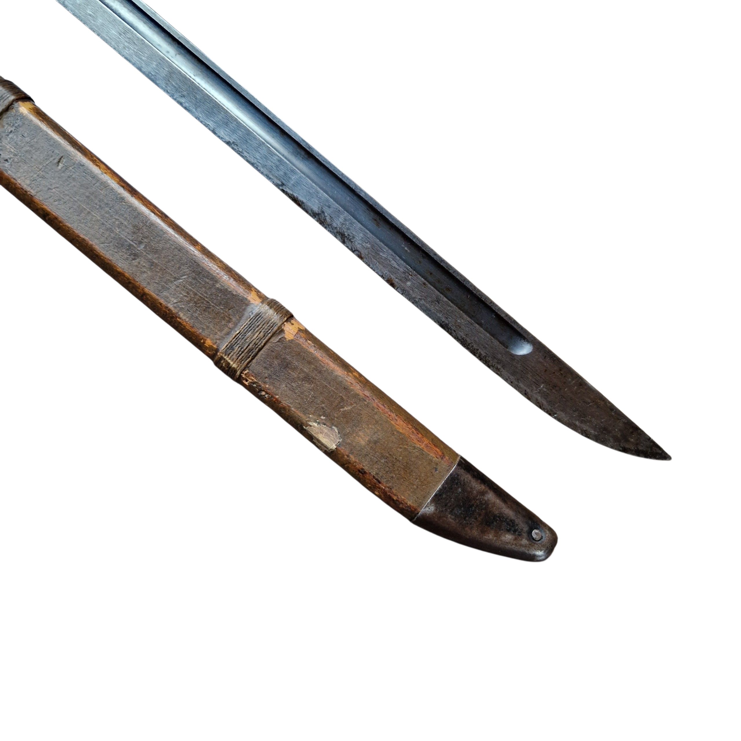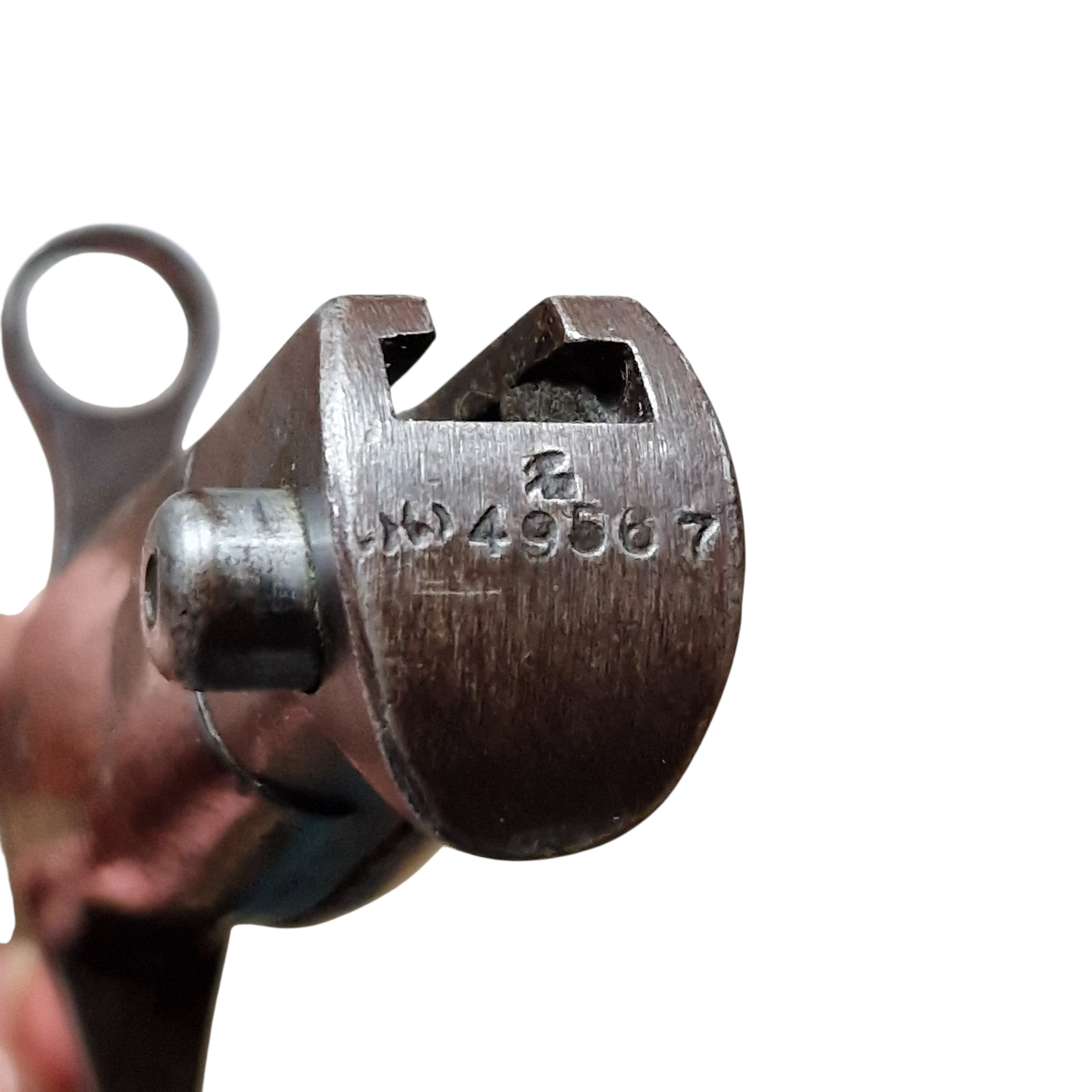 Bagnet Japoński Arisaka z bardzo rzadką pochwą z trzasek drewna z końca wojny, pochwa zastępcza z końca wojny, [ 44-45 rok], bagnet produkcji kontraktora czyli niewielkiej mano faktury ,,podwykonawcy” głównego arsenału; Rikugun Zoheisho Nagoya Kosho, bagnet pochodzi z USA, w Europie, Polsce nigdy wcześniej nie był w kolekcji, bagnet typ 30 czyli nieco wcześniejszy niż pochwa, sztych głowni ostrzony fabrycznie na bojowo, do połowy głowni, podobnie jak w Polskich bagnetach ,, mobilizacyjnych”, bagnet posiada bity numer broni 49567 z japońskimi oznaczeniami obok. bagnet w bardzo dobrym stanie, pełny oryginał, najbardziej ciekawą częścią bagnetu jest pochwa, nie jest to żadna kopia indyjska, pochewka klejona z dwóch trzasek drewna, sporo farby koloru khaki, sznurek widoczny na zdjęciach był z bagnetem i tak zostaje pozostawiony, jest ewidentnie stary, widoczna drobna naprawa w jednym miejscu pole 1cm x 1cm, niewielkie pęknięcie na drewnie około 6 cm bez znaczenia wizualnego jak i użytkowego pochwy. takich pochew zachowało się niewiele do naszych czasów, cena jest stosunkowo niska jak za taką rzadkość, tak naprawdę koszt całości to głównie pochwa.