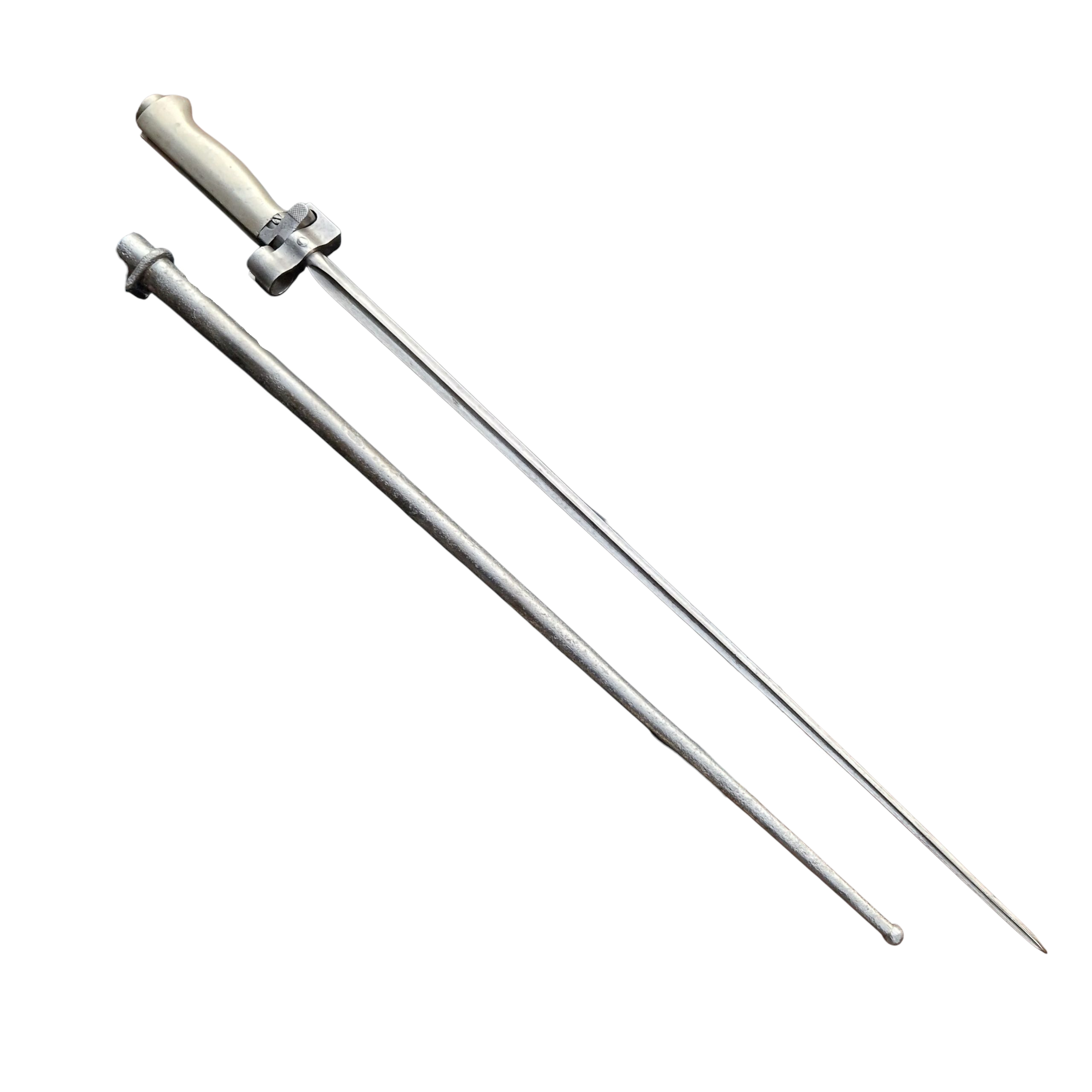 Bagnet wzór 1886 Lebel / Polski wzór 86/93, przyjęty na wyposażenie Wojska Polskiego, bagnet w pełni oryginalny, na rękojeści wybite Polskie oznaczenie wzoru bagnetu- WZ.86/93, rękojeść z melchioru[ stop miedzi i niklu] w dolnej części jelca wybity jest Polski numer bagnetu 12 856 z literkami RP, na płaszczy pochwy słabo widoczne znaki kontrolne – zatarte litery H i T wpisane w okręgi, bagnet w stanie dobrym, pochwa po profesjonalnej konserwacji, całość bagnet jak i pochwa są z jednego Polskiego kompletu. DARMOWA WYSYŁKA. Bagnety po wcześniejszym umówieniu można zobaczyć i zakupić w biurze naszej firmy.
