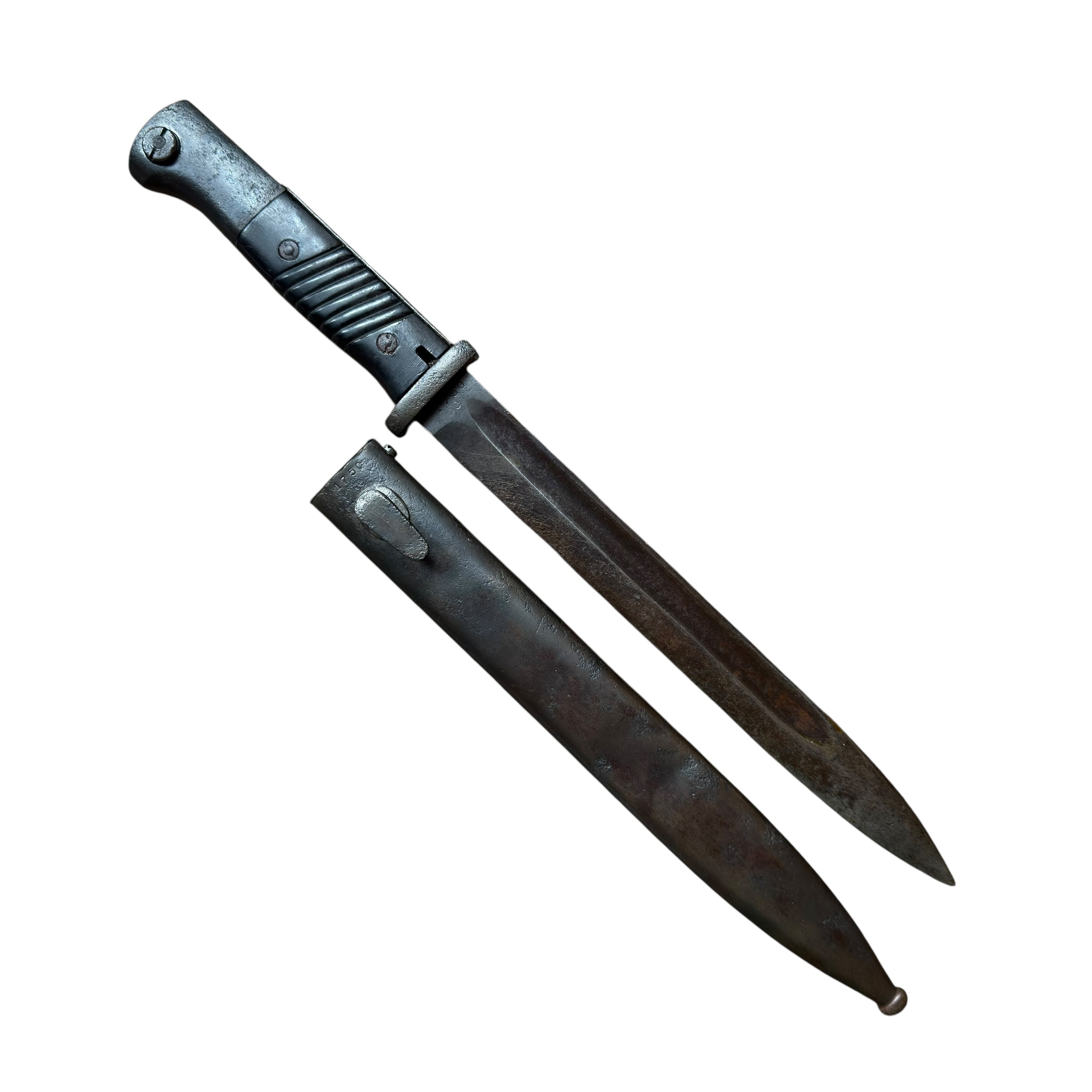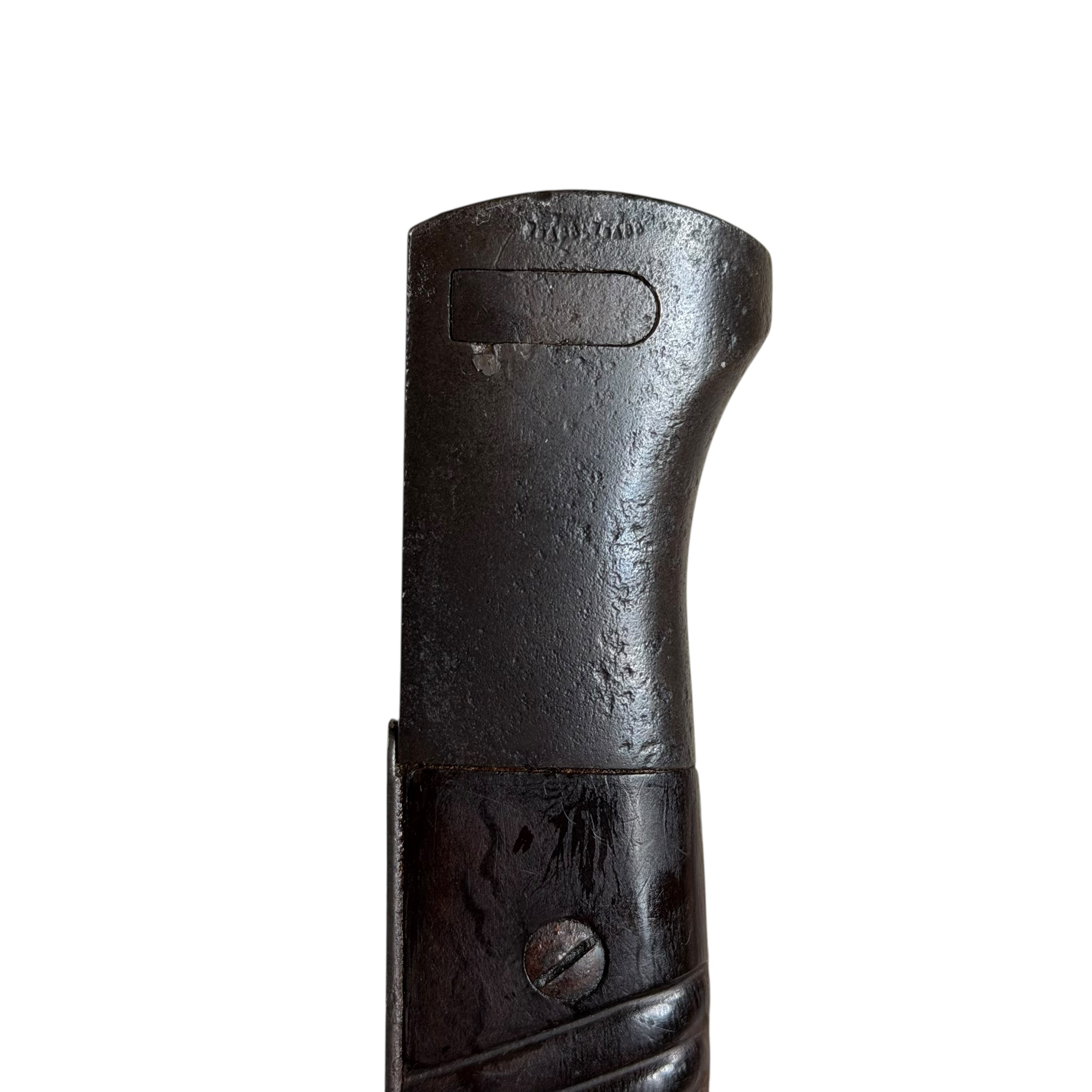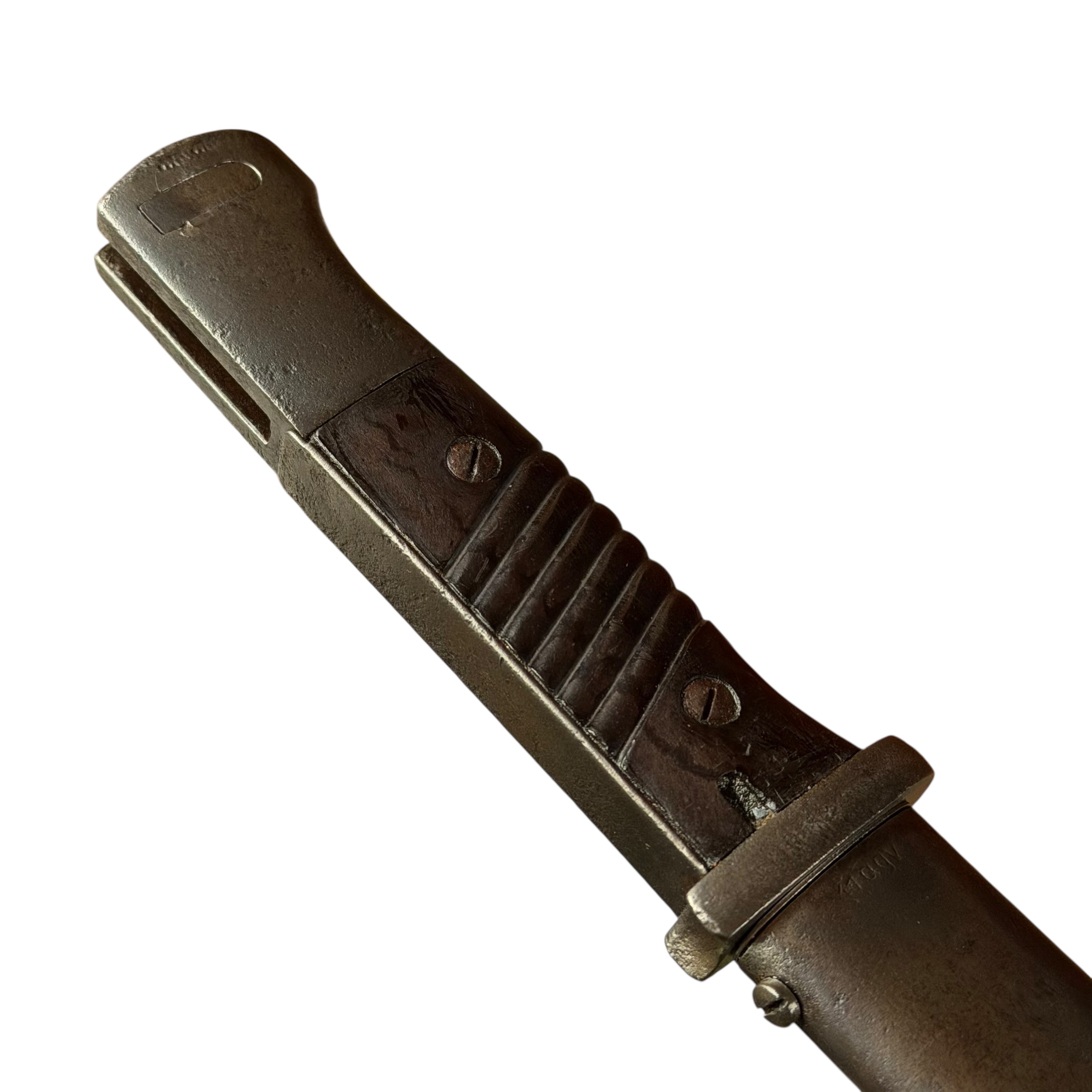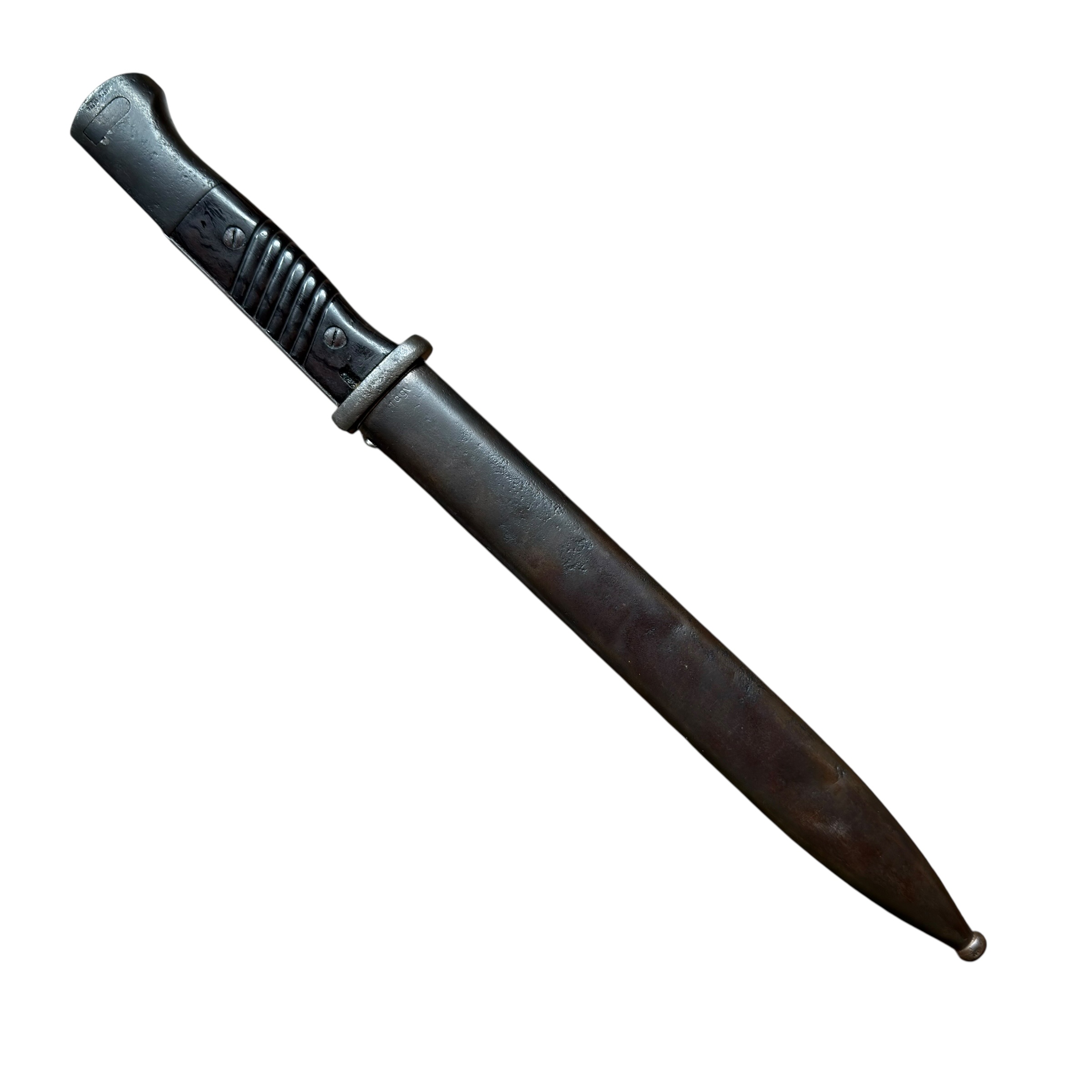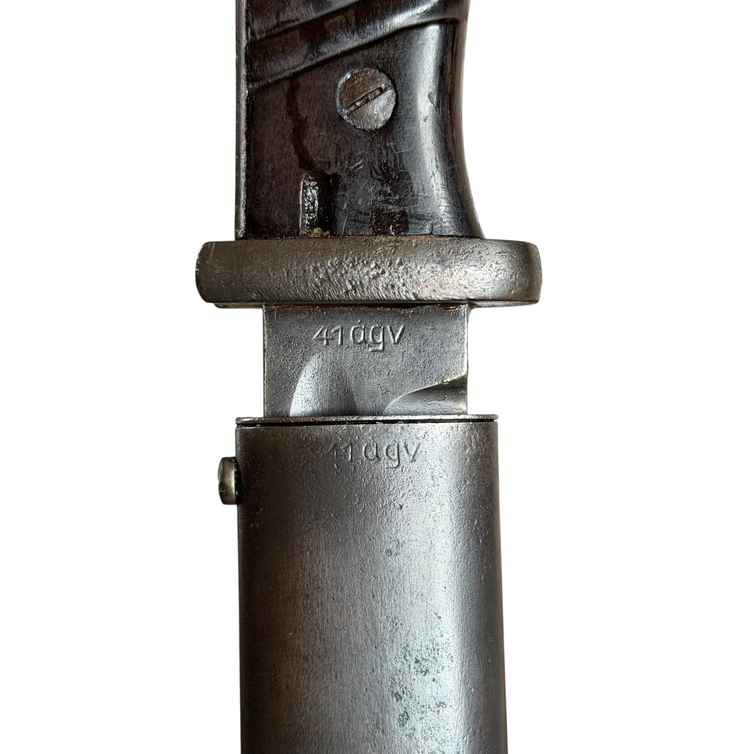Bagnet mauser s84/98 ZGODNY, sygnowany numerem 1750 e, producent Berg&Co, Solingen-Ohligs kod: agv, pochwa posiada kilka malutkich wgnieceń, bagnet sygnowany Wafenamtami, bardzo klimatyczny bagnet w przyjemnym stanie