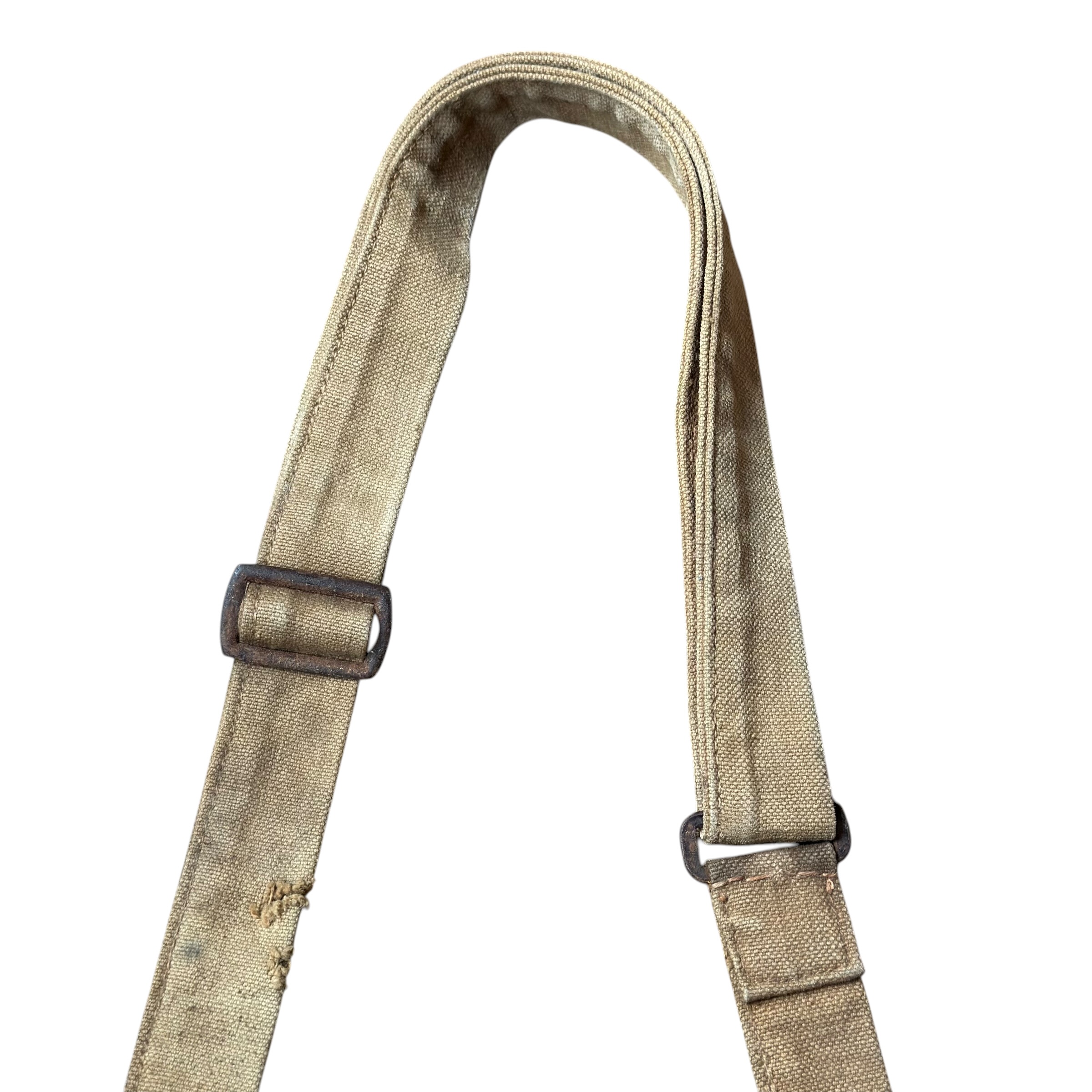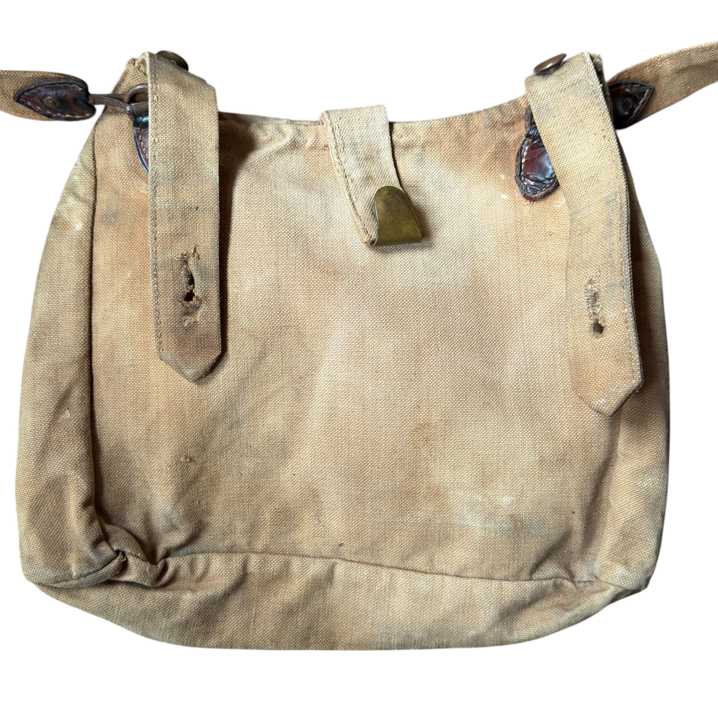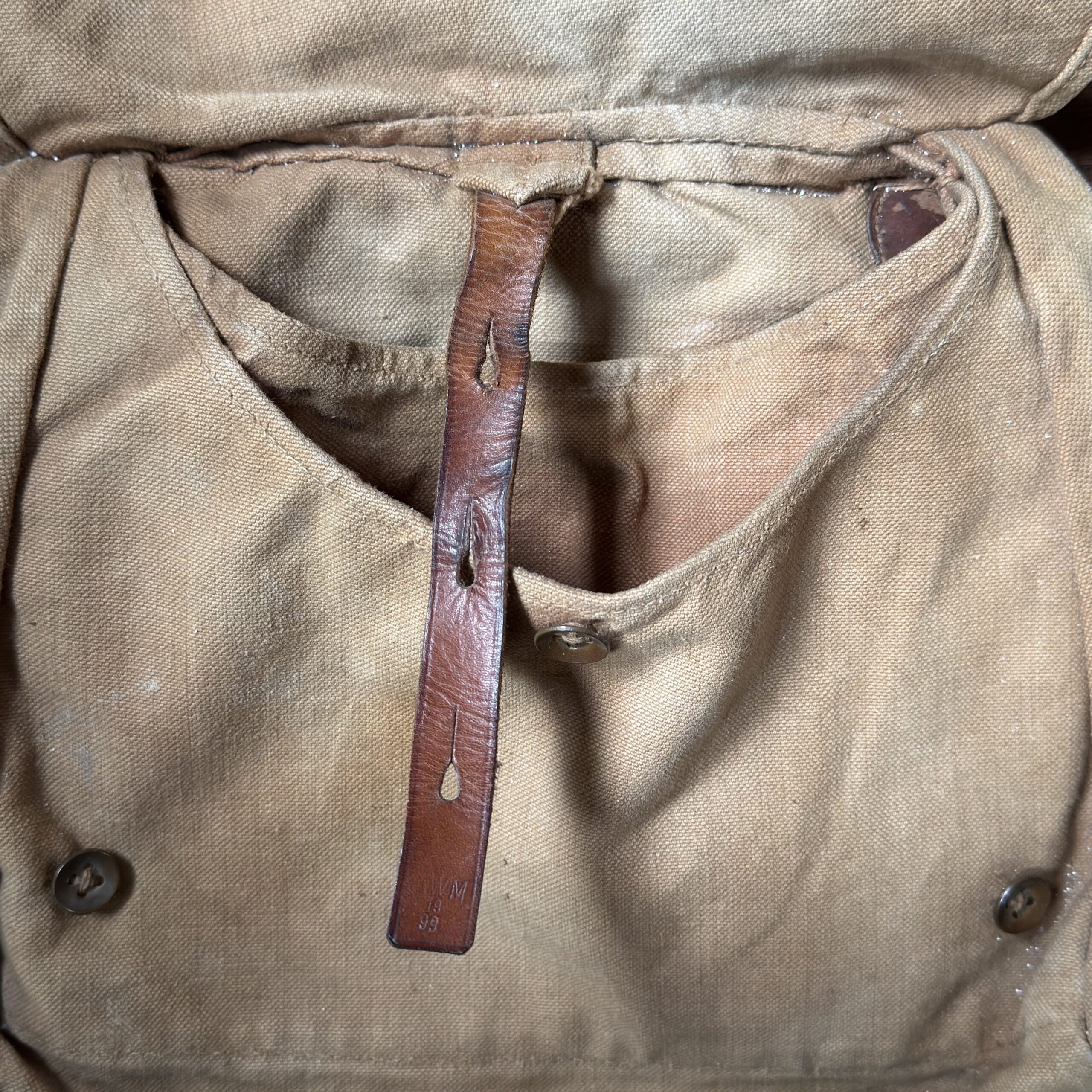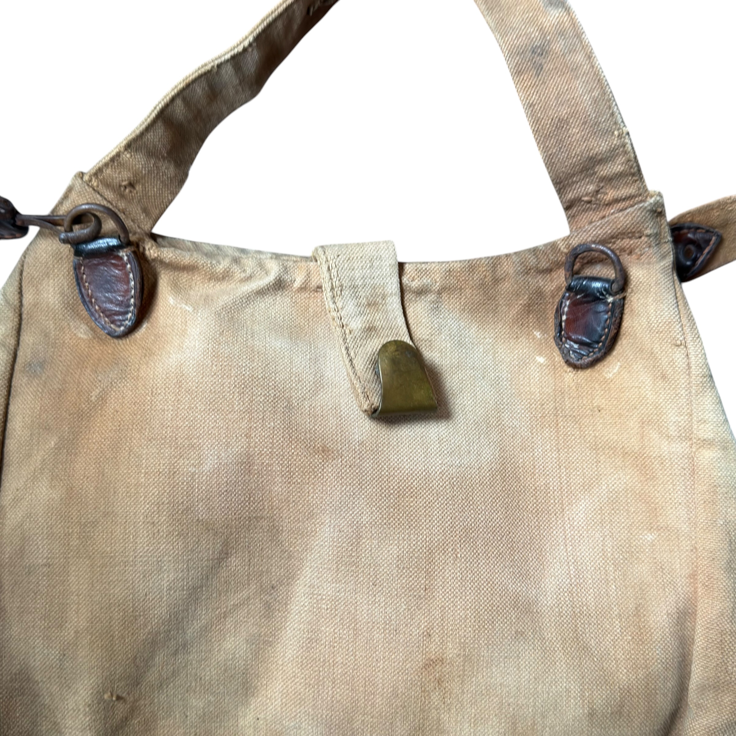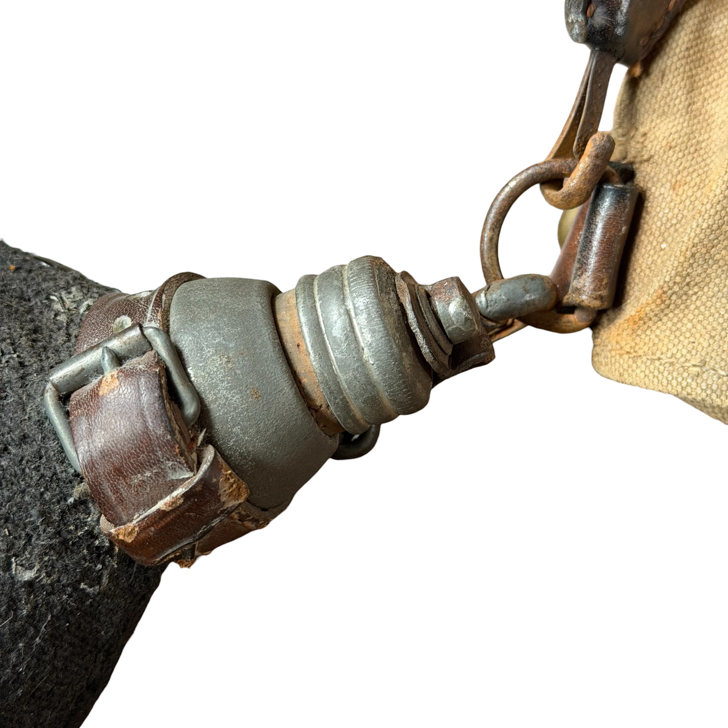 Cesarstwo Niemieckie – chlebak wraz z paskami i manierką W REWELACYJNYM STANIE , tkanina bawełniana w kolorze jasno oliwkowym, obecne wszystkie guziki na pokrowcu manierki, w środku pięknie widoczne tuszowe sygnowanie  w tym datę „1900″ i oznaczenie „15 I. R.”; manierka z oryginalnym lekko skorodowanym karabińczykiem zawieszonym na torbie na chlebaku za pomocą  oryginalnej zawieszki , zawieszka wytarta w miejscu zawieszenia spójnie z karabińczykiem od manierki co wskazuje na oryginalny komplet manierki i chlebaka, jest to -wszystko na to wskazuje – całość z epoki!!  nakrętka manierki ze skórzanym oryginalnym  paskiem, manierka aluminiowa wraz z ciemno szarym filcowym pokrowcem, całość zachowana bardzo dobrze,  okaz muzealny, rzadko spotykany komplet, tutaj cena nie jest najważniejsza, w tym przypadku widać historię na wysokim poziomie.