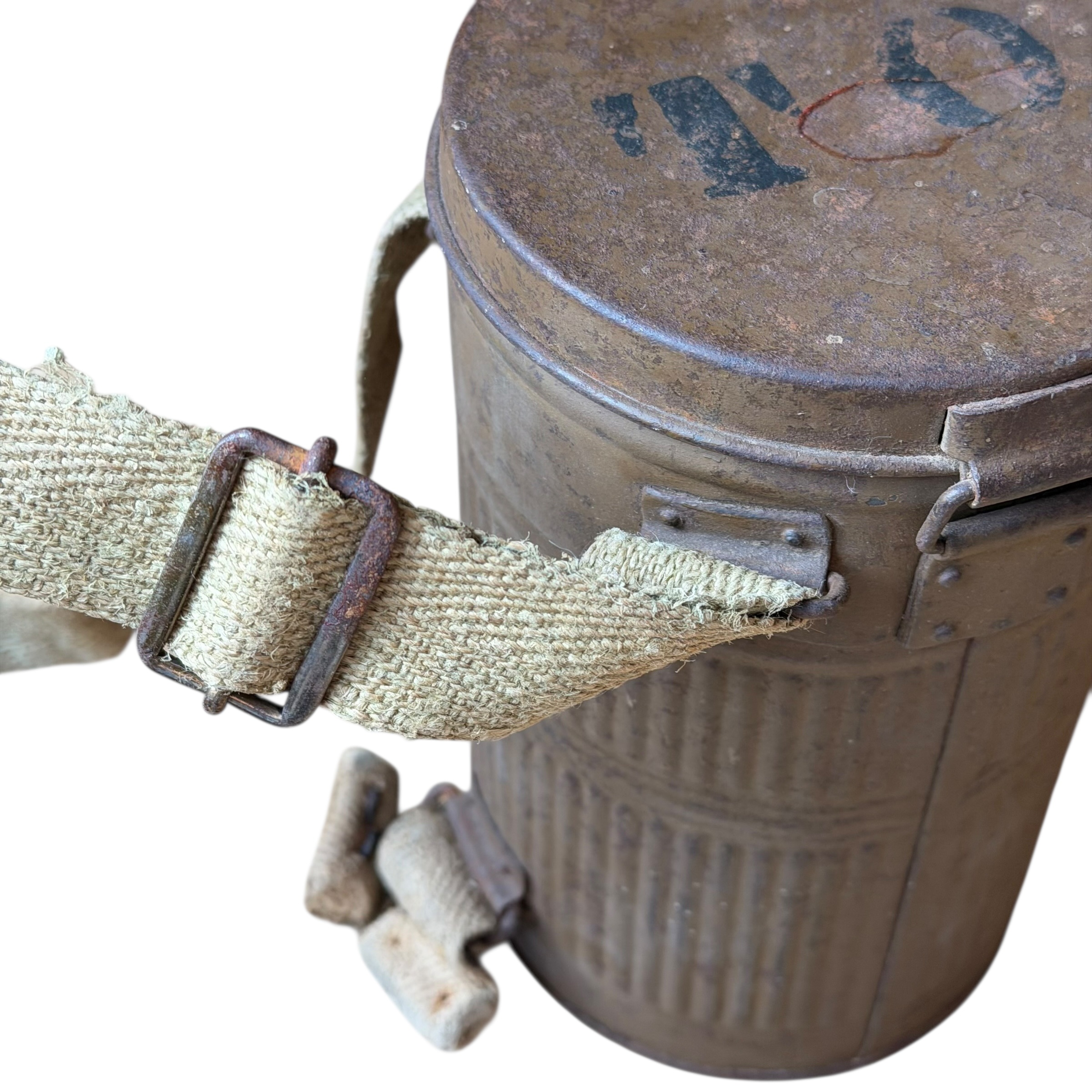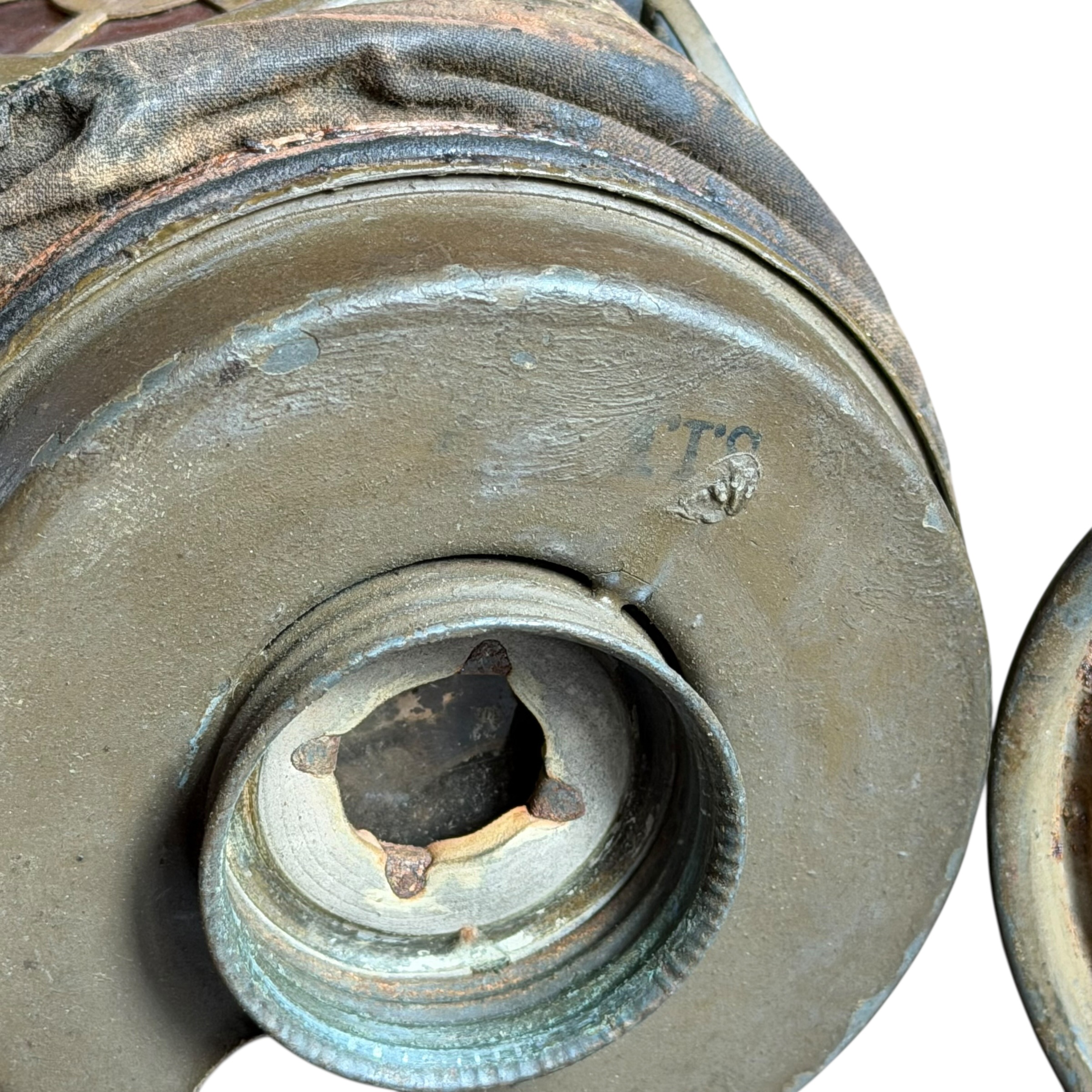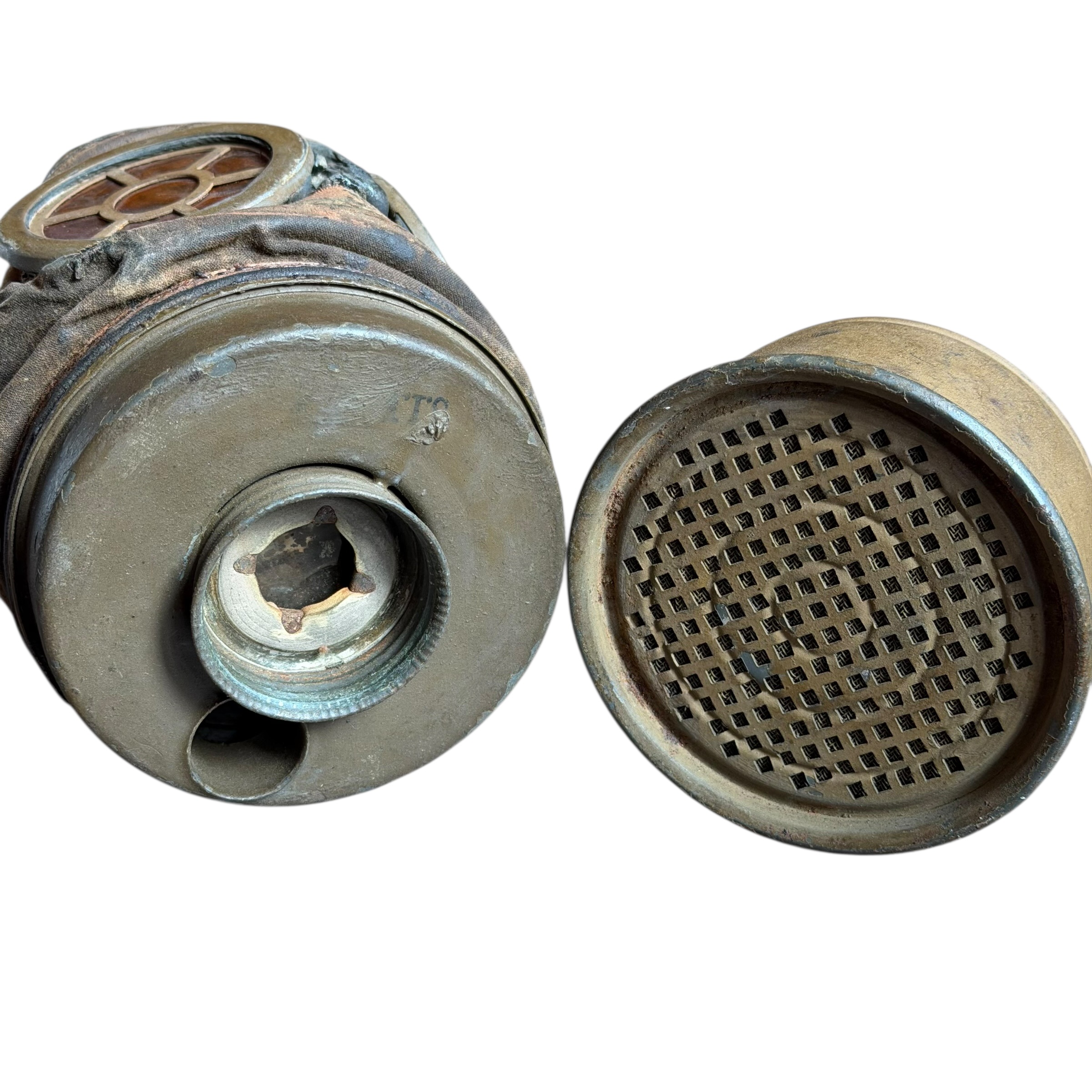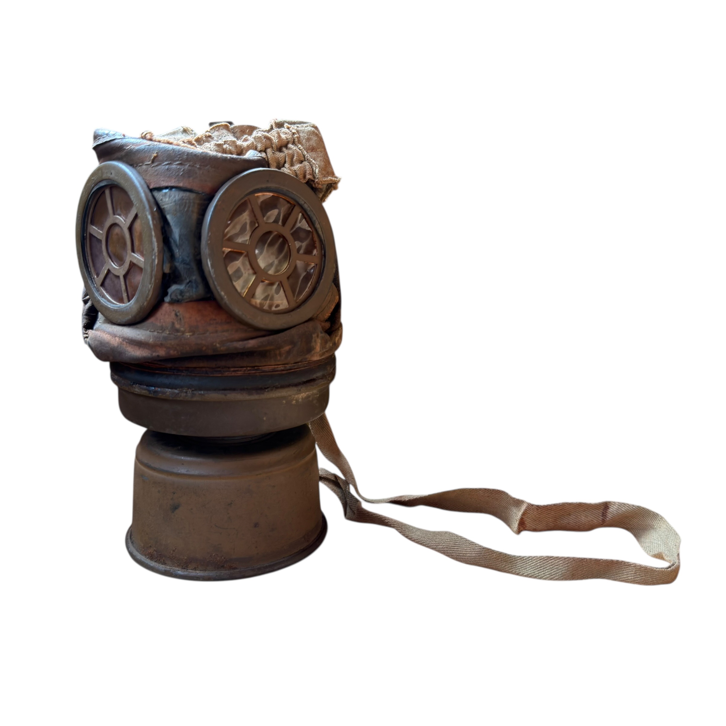 Rzadka na Polskim rynku Francuska maska przeciwgazowa ARS 17, I wojna światowa, używana do 1931, wtedy została wprowadzona ulepszona wersja czyli ANP T-31, maski były używane także w wojsku Polskim jak i Belgijskim, puszka zachowana w bardzo dobrym stanie wraz z oryginalnymi paskami i kartką zachowaną w środku, maska zachowana bardzo dobrze z wszystkimi paskami, jednak materiał jest stwardniały, całość zachowana bardzo dobrze, dużo widocznych sygnatur (tuszowych), komplet pasków, cała puszka pokryta oryginalną farbą, szkła z tworzywa oryginalne.