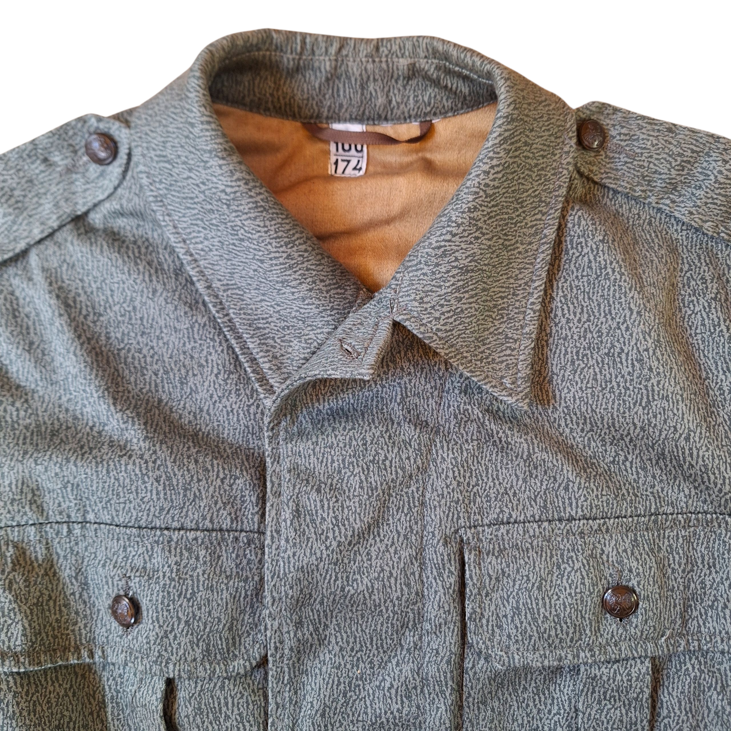 Mundur 4652 mora, bluza r. 100/174, spodnie r. 92/179, Bechatka r.98/171, Buty opinacze brązowe r. wojskowy 30,5 standardowy 46 , Ładownica na 3 magazynki do AK , Magazynek do AK , Pas główny, Uszanka r. 57, Komin, Rękawice, Maska „słoń” z torbą, Hełm wz 67, Rogatywka r. 58, Łopatka trzonkowa z pokrowcem, Szelki, Kombinezon przeciwchemiczny