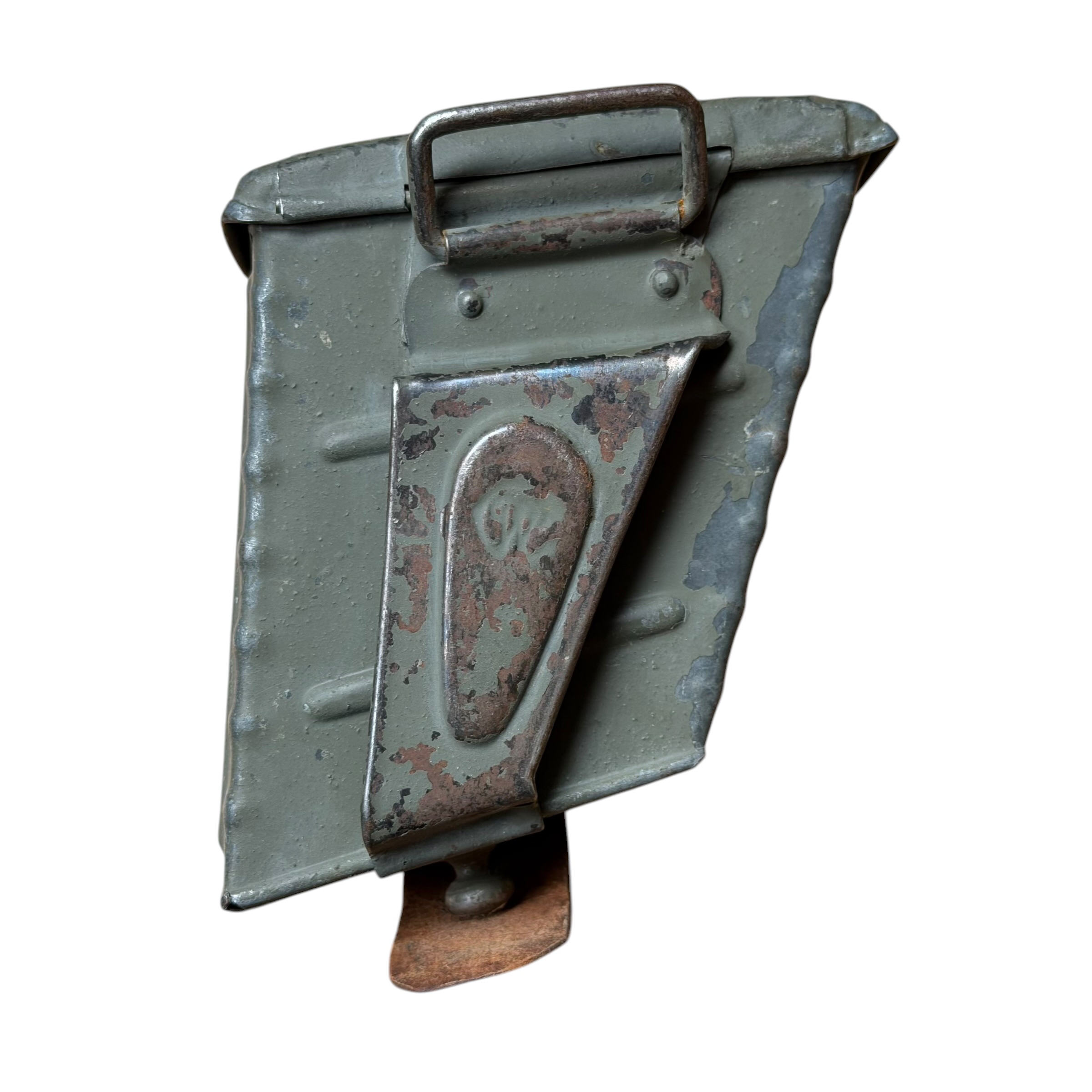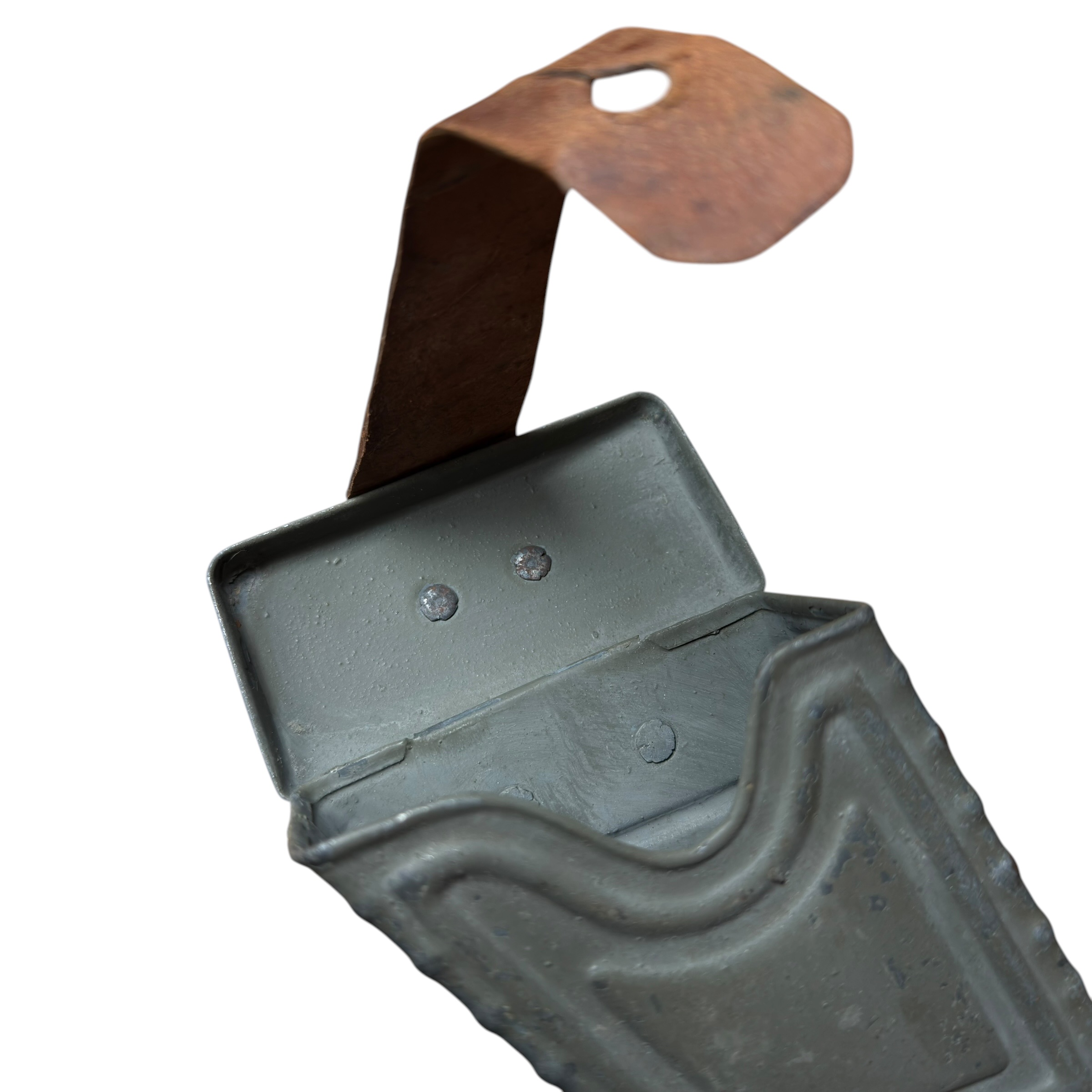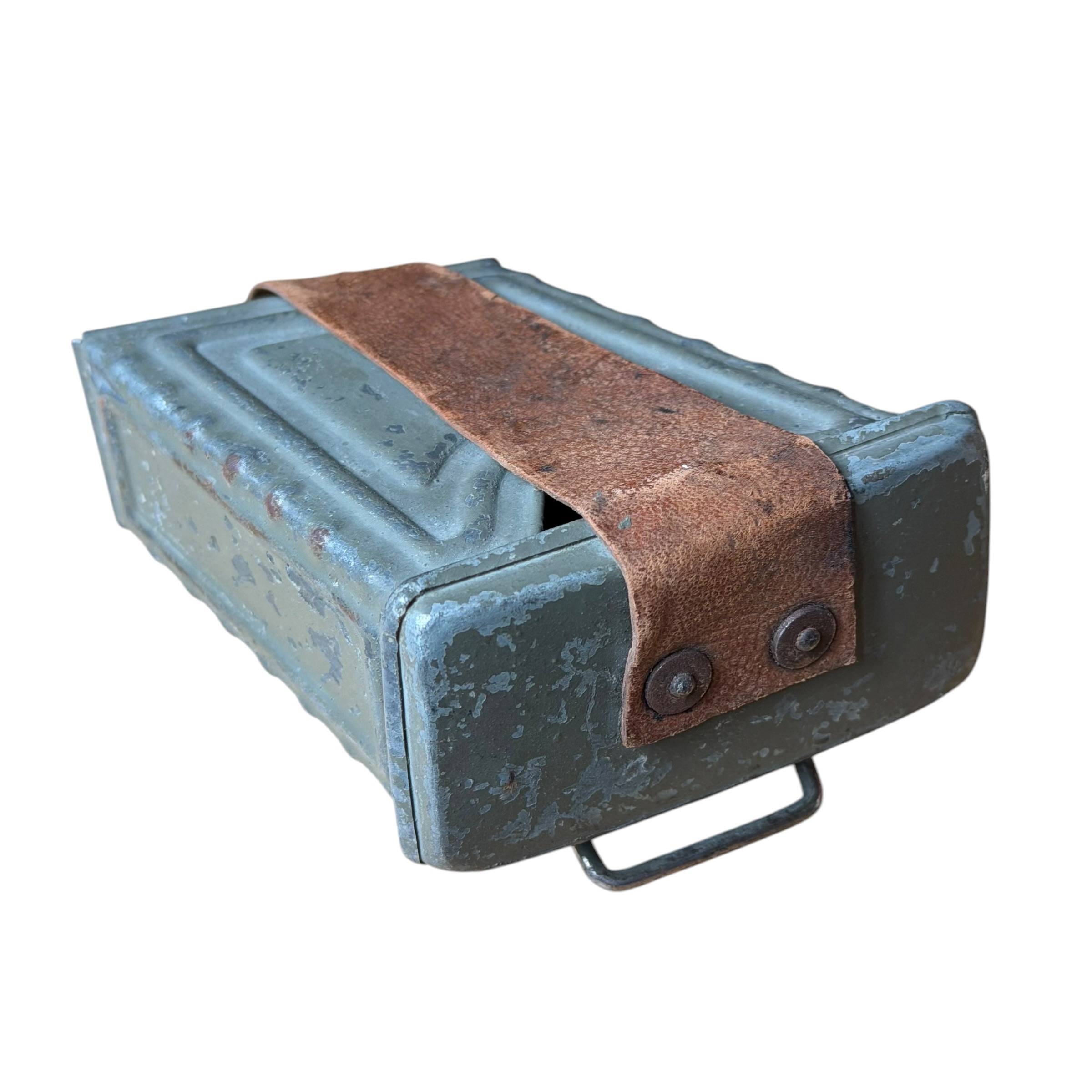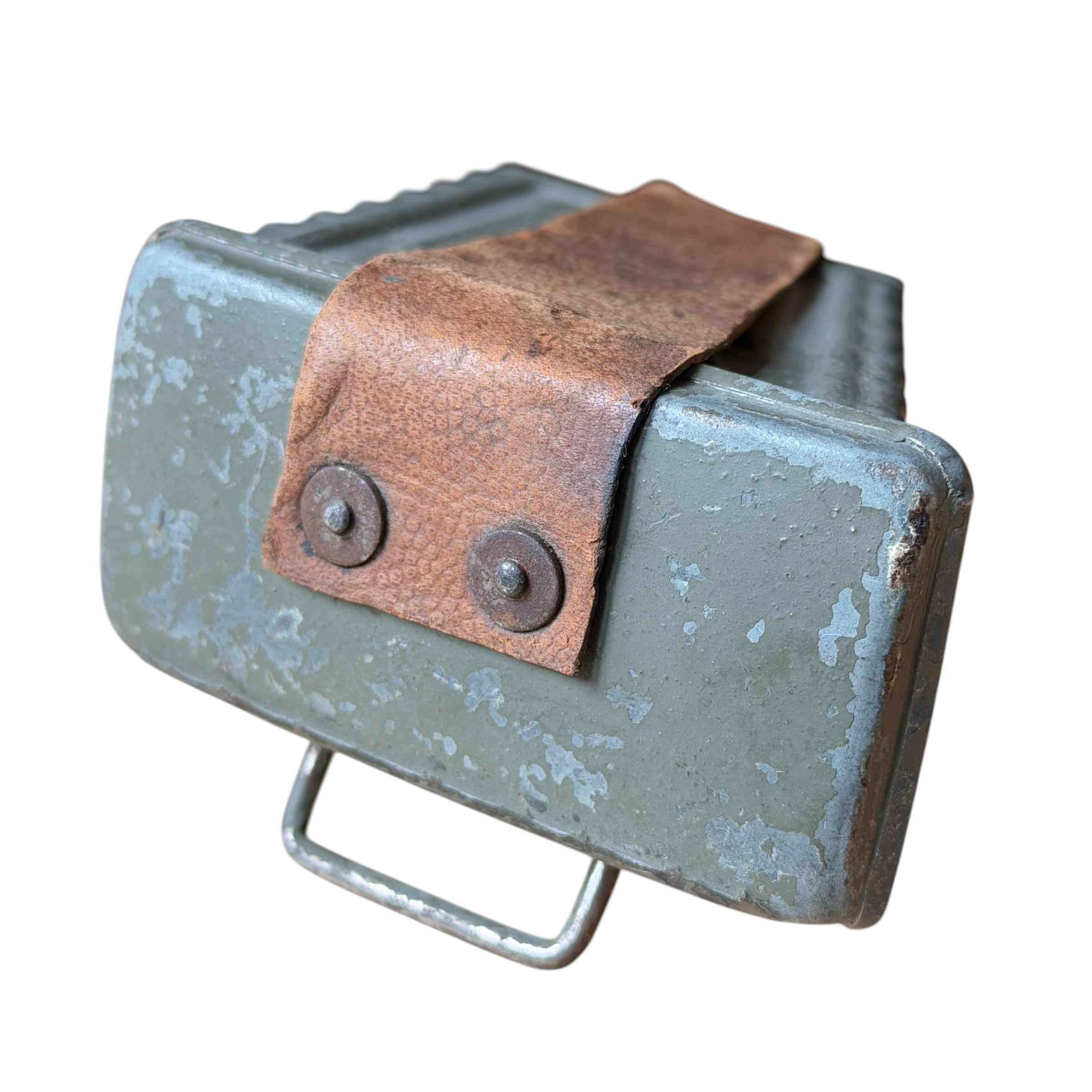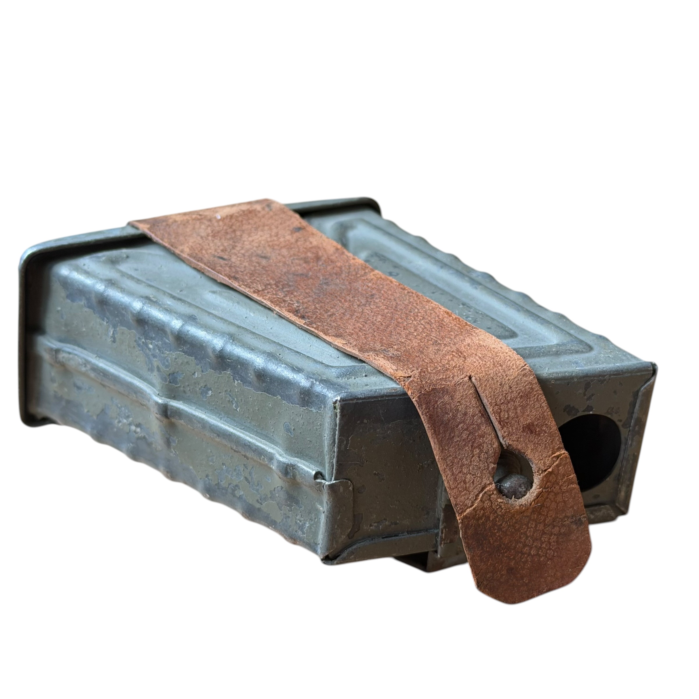 Rzadka Austro-Węgierska Ładownica do Mannlichera M95 ERSATZ (zastępcza) wykonana z metalu, na ładownicy prawie w pełni zachowana oryginalna farba Austriacka polno szary czyli Feldgrau, skórzany pasek zachowany bardzo dobrze, bardzo ciężko znaleźć ten model ładownicy (ersatz) w takim stanie zachowania, na ostatnim zdjęciu widoczny żołnierz który właśnie na pasie nosi dwie takie ładownice, jest to zdjęcie z końca wojny, polecamy do wymagającej kolekcji.