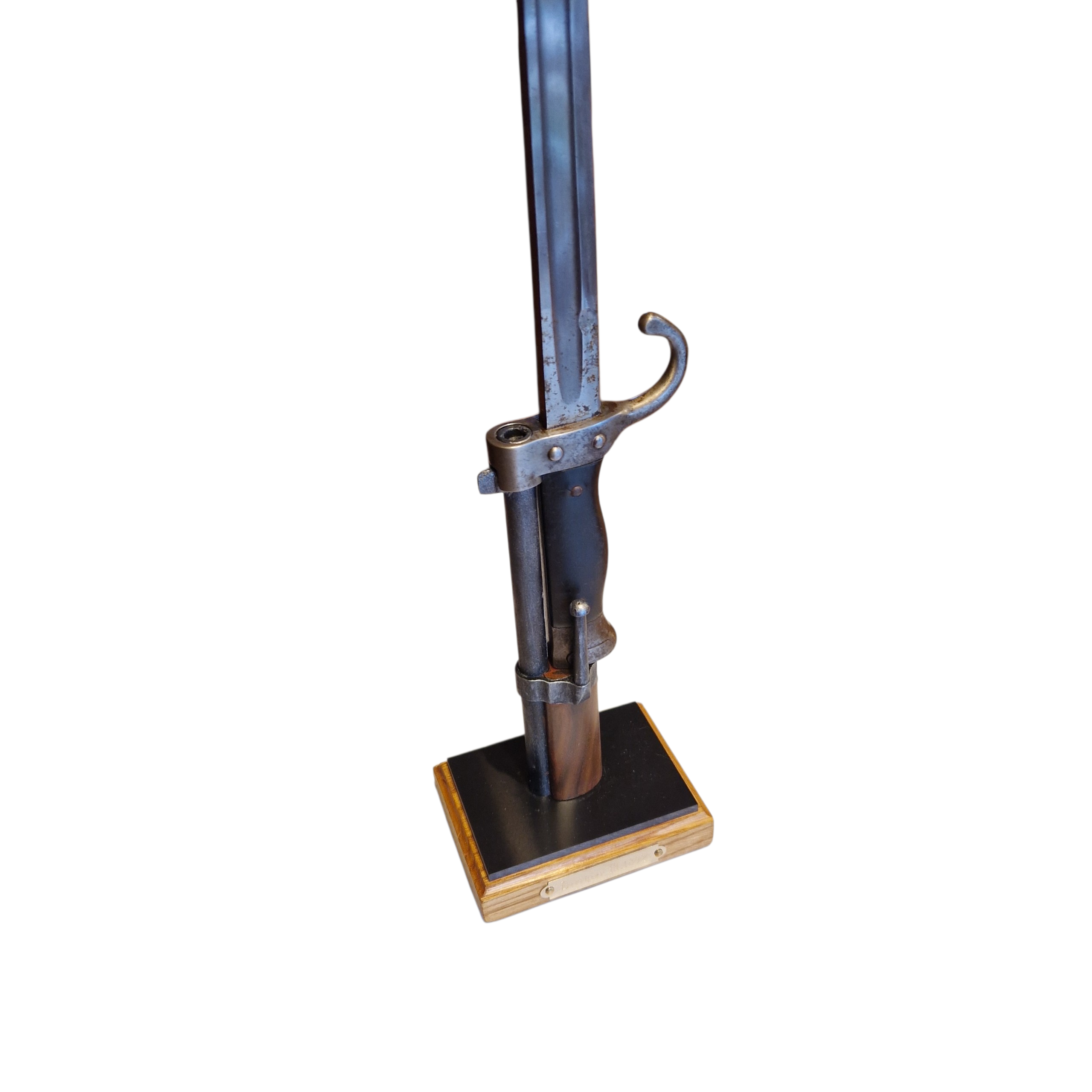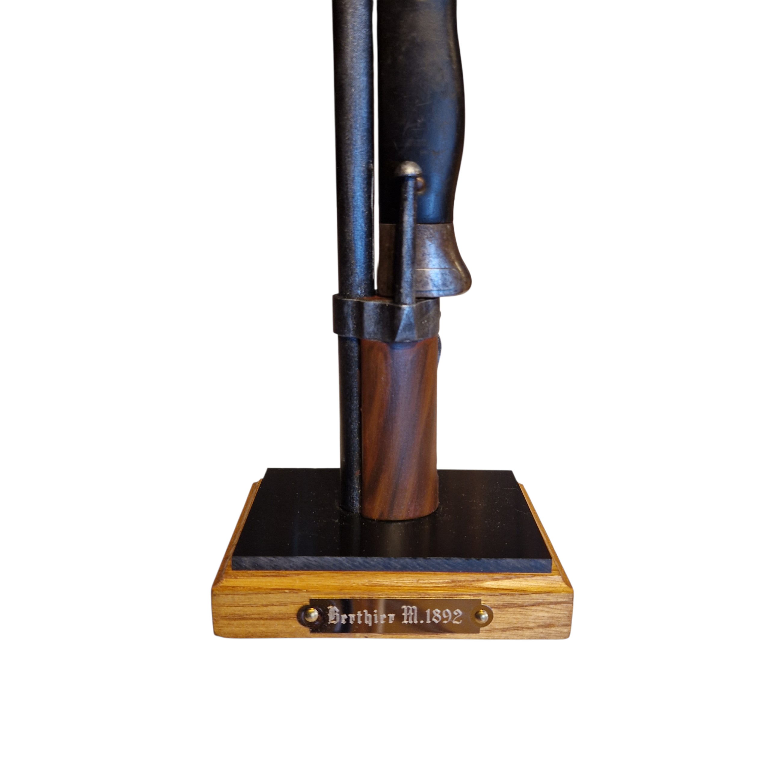 Podstawa do bagnetów Berthier , podstawa bardzo realistyczna, lufa i czarna podstawka wykonana z tworzywa, natomiast podstawa główna z drewna dębowego. Tabliczka grawerowana z opisem wzoru/modelu karabinka, podstawa stabilna nawet przy dużych bagnetach, bagnet zapinany jak na prawdziwej broni, UWAGA; musi być sprawny zatrzask w bagnecie aby go zapiąć. UWAGA; podstawa jest sprzedawana bez bagnetu. WIĘKSZA ILOŚĆ NA ZAMÓWIENIE.