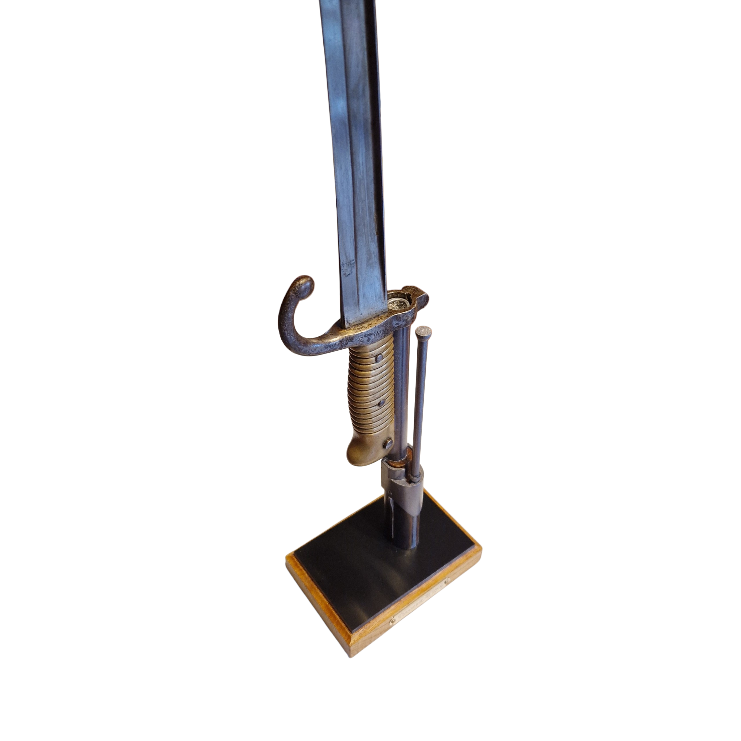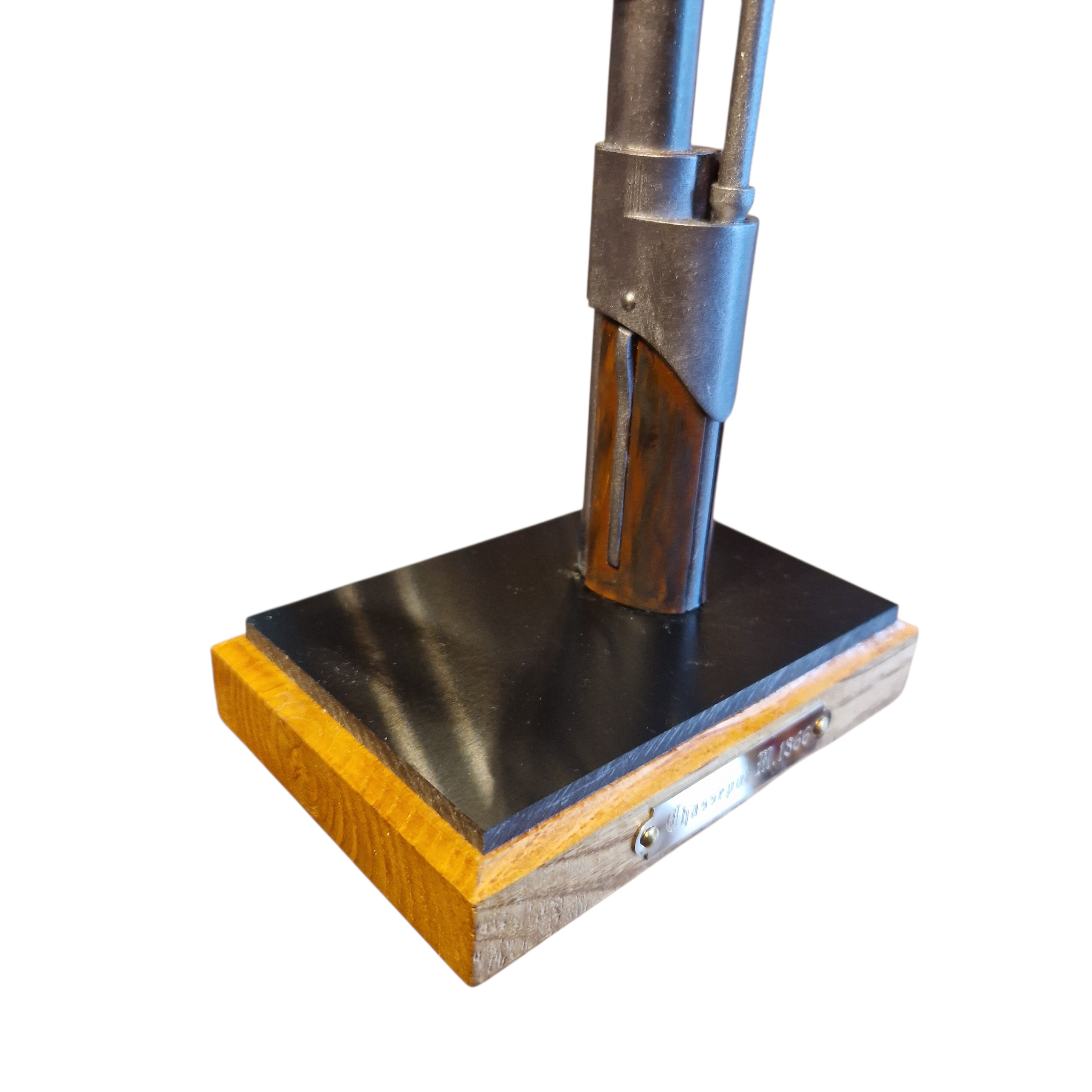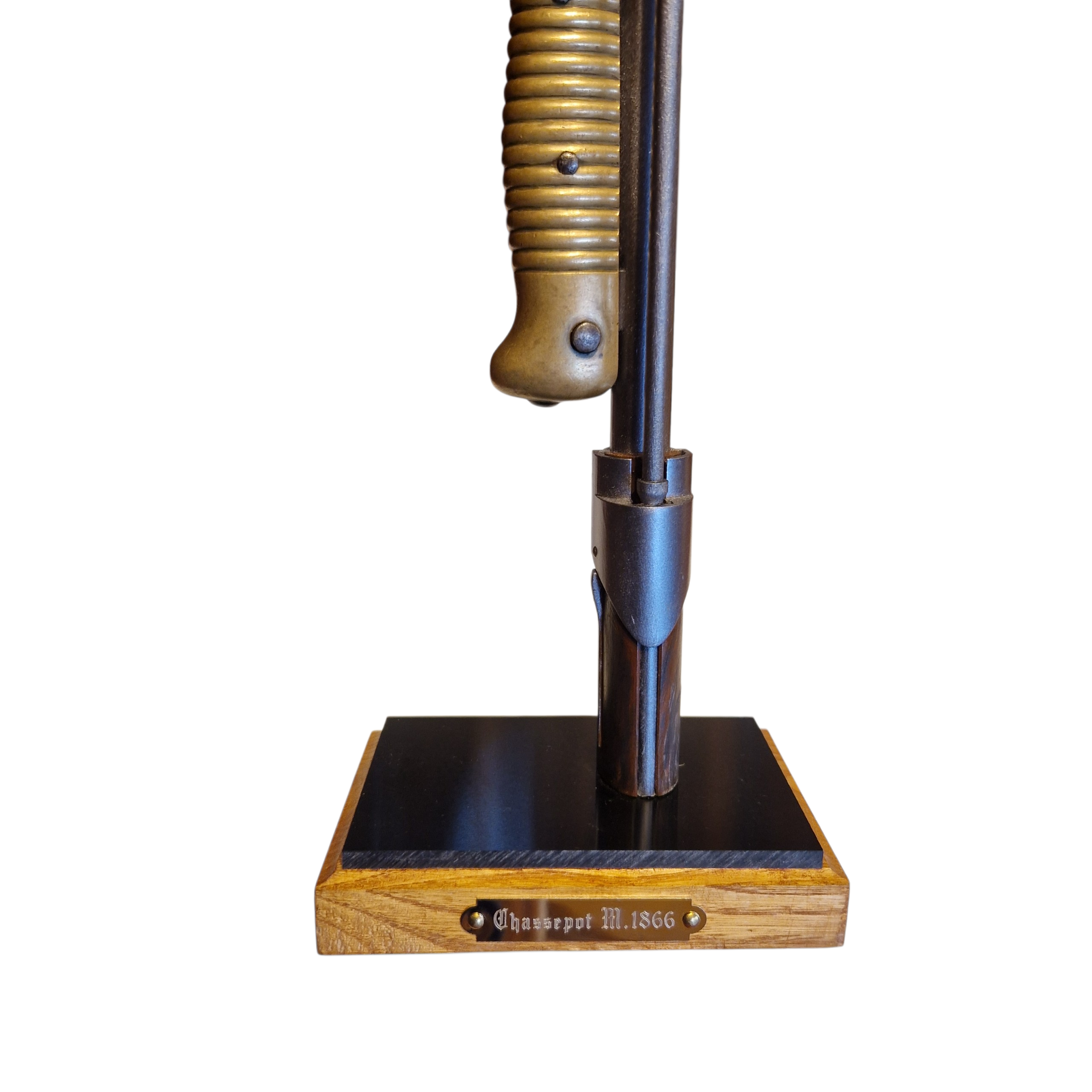 Podstawa do bagnetów Chassepot 1866, podstawa bardzo realistyczna, lufa i czarna podstawka wykonana z tworzywa, natomiast podstawa główna z drewna dębowego. Tabliczka grawerowana z opisem wzoru/modelu karabinka, podstawa stabilna nawet przy dużych bagnetach, bagnet zapinany jak na prawdziwej broni, UWAGA; musi być sprawny zatrzask w bagnecie aby go zapiąć. UWAGA; podstawa jest sprzedawana bez bagnetu. WIĘKSZA ILOŚĆ NA ZAMÓWIENIE.