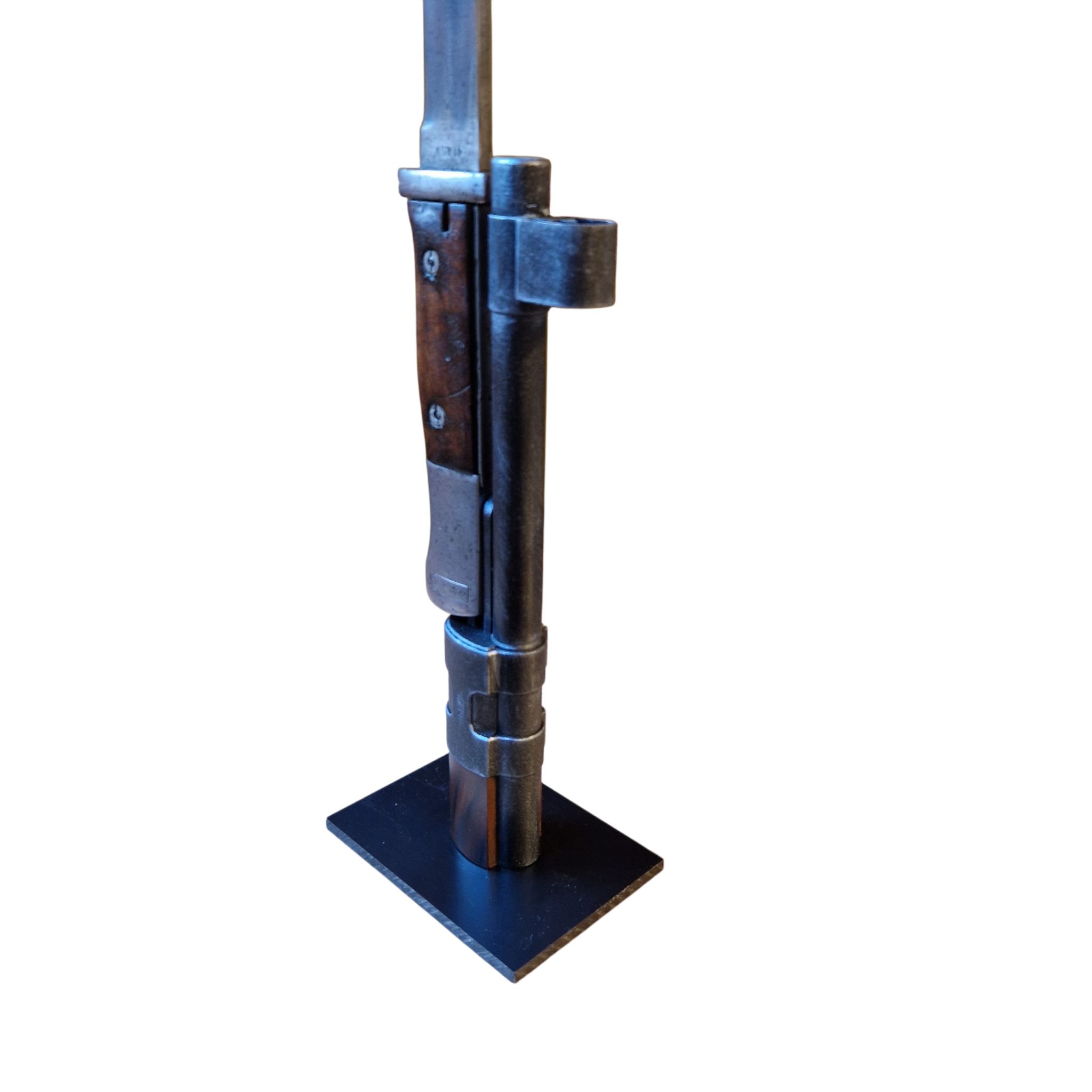 Podstawa do bagnetów S 84/98 Mauser, podstawa bardzo realistyczna, wykonana z tworzywa, stabilna nawet przy dużych bagnetach, bagnet zapinany jak na prawdziwej broni, UWAGA; musi być sprawny zatrzask w bagnecie aby go zapiąć. UWAGA; podstawa jest sprzedawana bez bagnetu, Można zakupić w naszym sklepie także tabliczki grawerowane z oznaczeniem modelu/wzoru