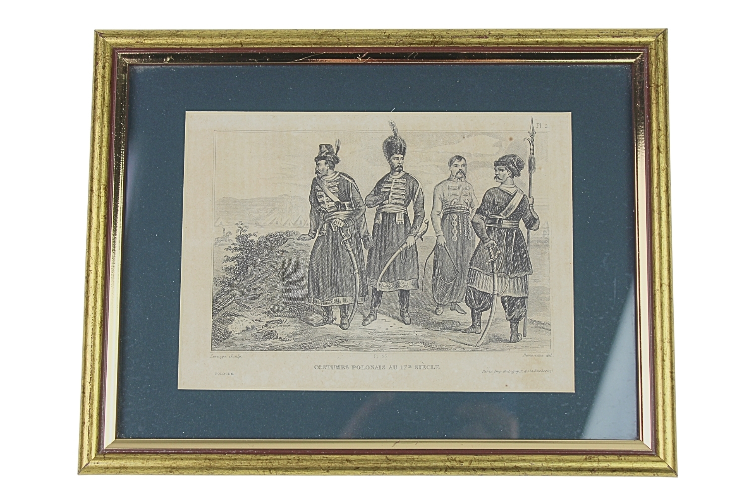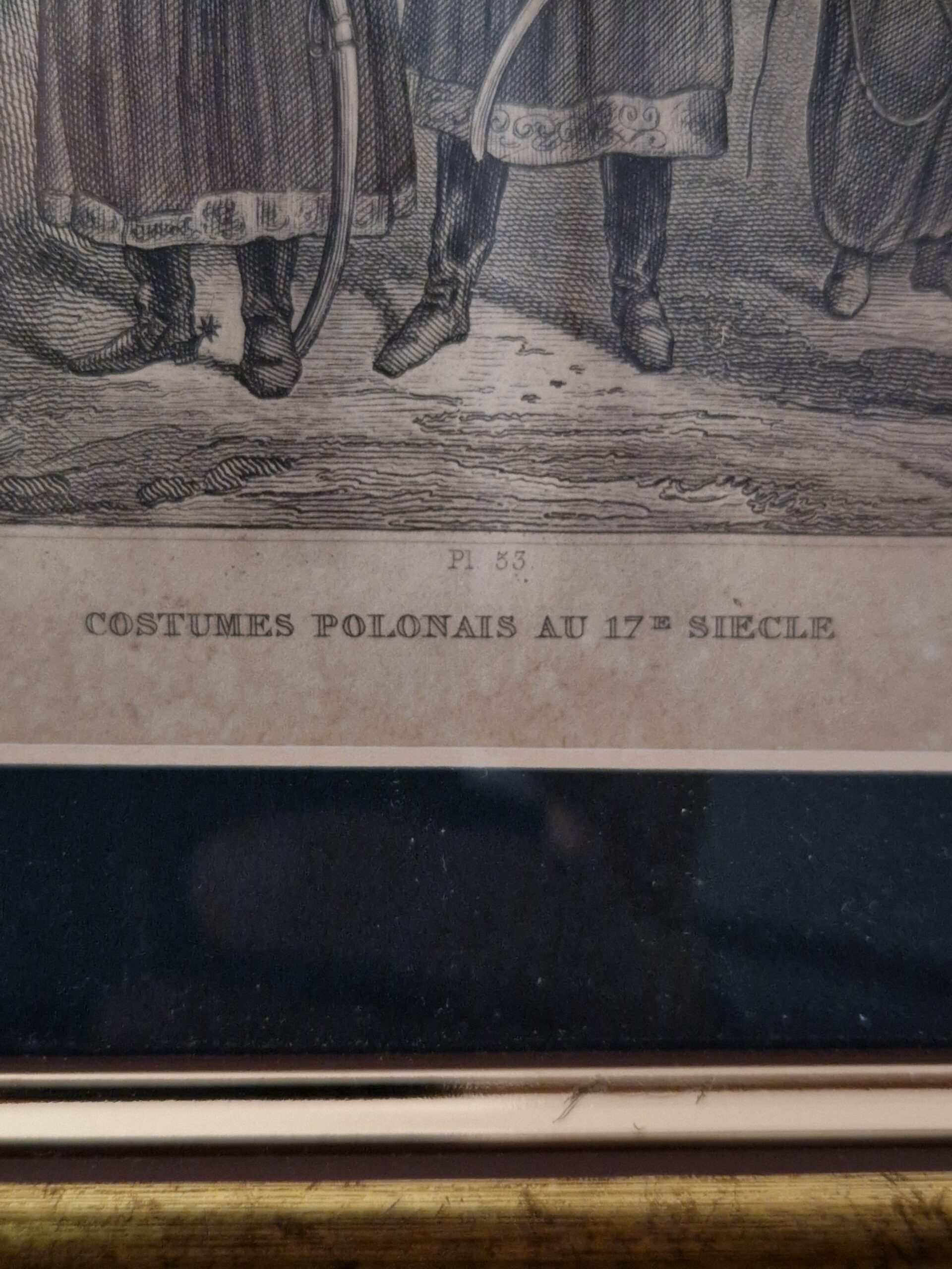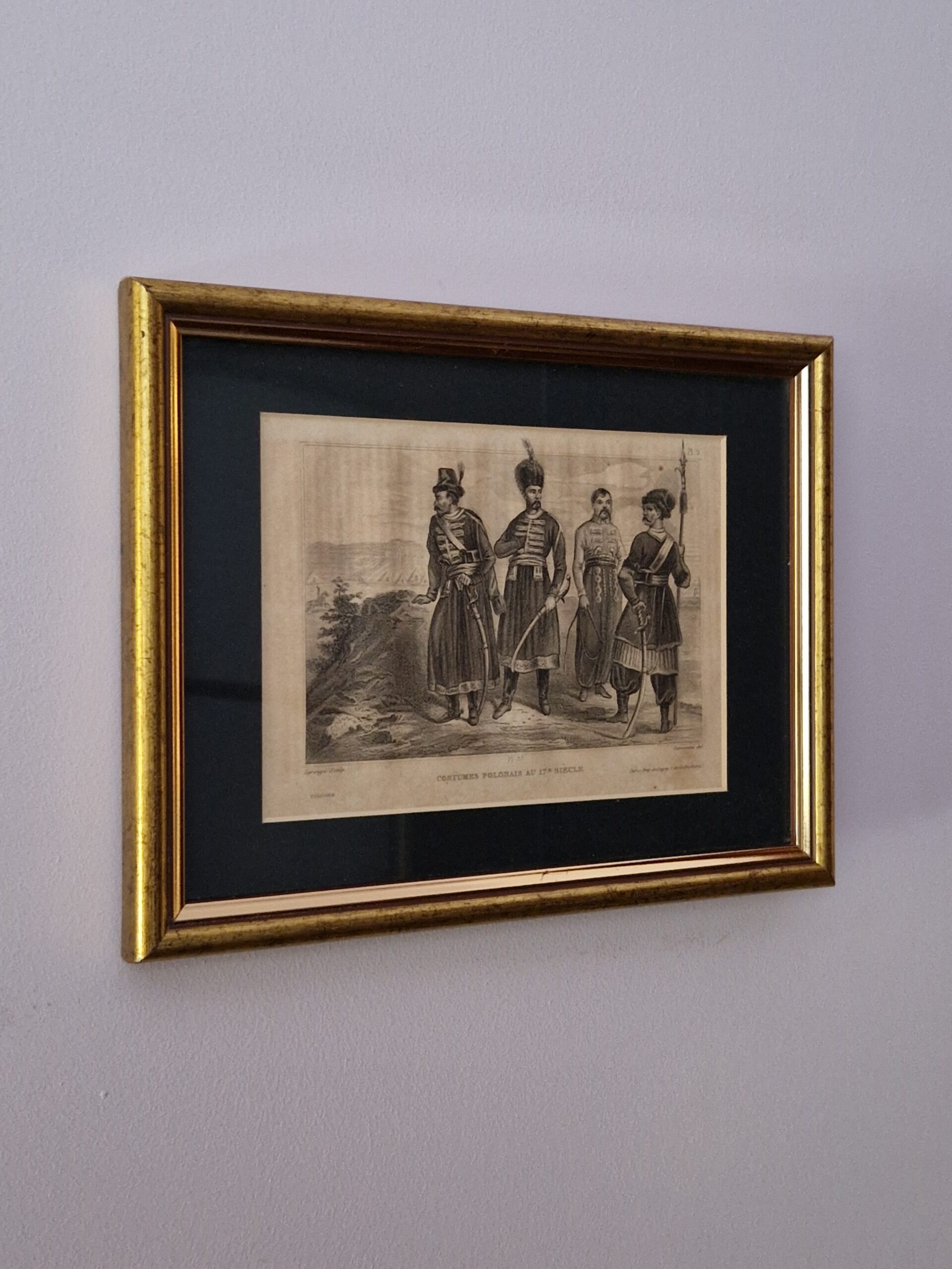 Rycina ubiory Polskie, Francja pierwsza połowa XIX wieku, oprawione w ramkę, wymiar ramki 265 x 205 mm, wymiar ryciny 175×126 mm