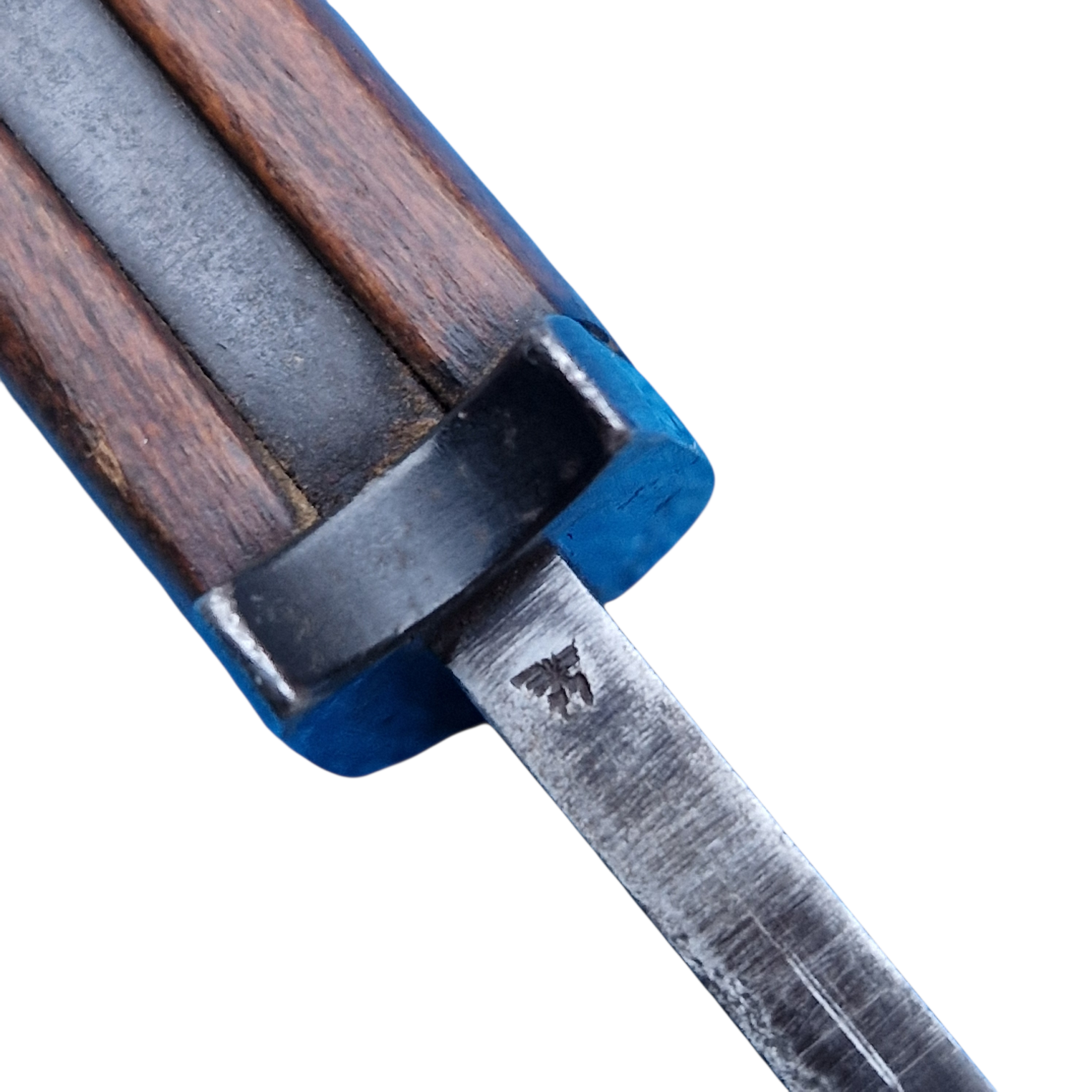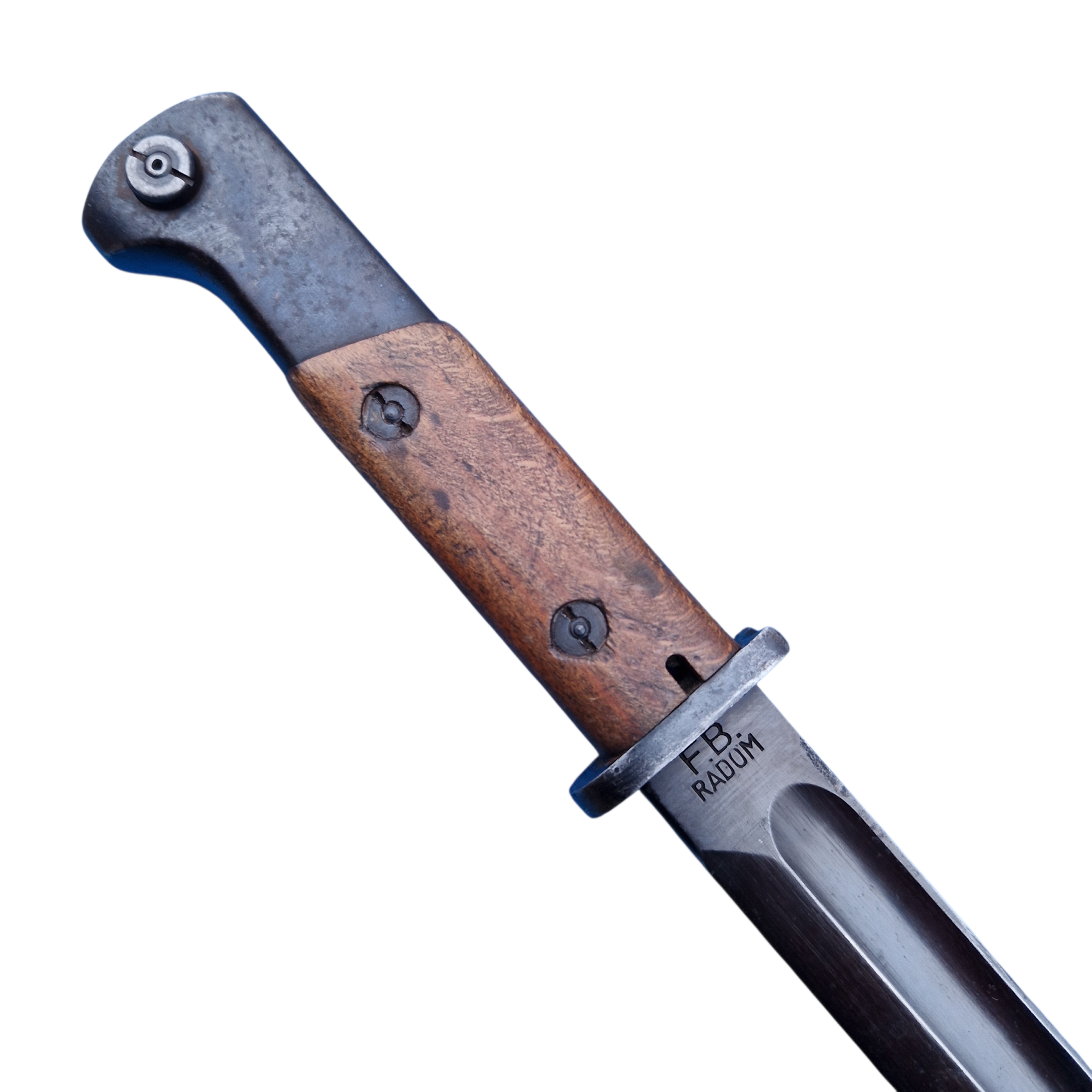 Bagnet Polski wzór 1929, tak zwany mobilizacyjny wybita na głowni data 1939, bagnet przejęty przez Niemców w 1939 roku i oksydowany,Brak widocznych Polskich odbiorów których Niemcy nie usuwali może sugerować że bagnet może pochodzić z ,, ostatnich dni produkcji”, przez Niemców obcięty został też pierścień jelca i nabity na grzbiecie głowni Waffenamt, pochwa niemiecka, zostały też odwrócone nakrętki okładek przez Niemców co czynili standardowo w przejętych bagnetach, głownia ostrzona fabrycznie na bojowo do połowy, bagnet, pochwa, oksyda, okładki w bardzo dobrym i oryginalnym stanie bez oznak dzisiejszych ingerencji, rzadko spotykany bagnet mobilizacyjny zwłaszcza zniemczony, bagnetów mobilizacyjnych wyprodukowano niewiele bo około 40 tys z czego zniemczonych zostało ?? nie wiadomo. Bagnet można ocenić i zakupić bezpośrednio w biurze naszej firmy.