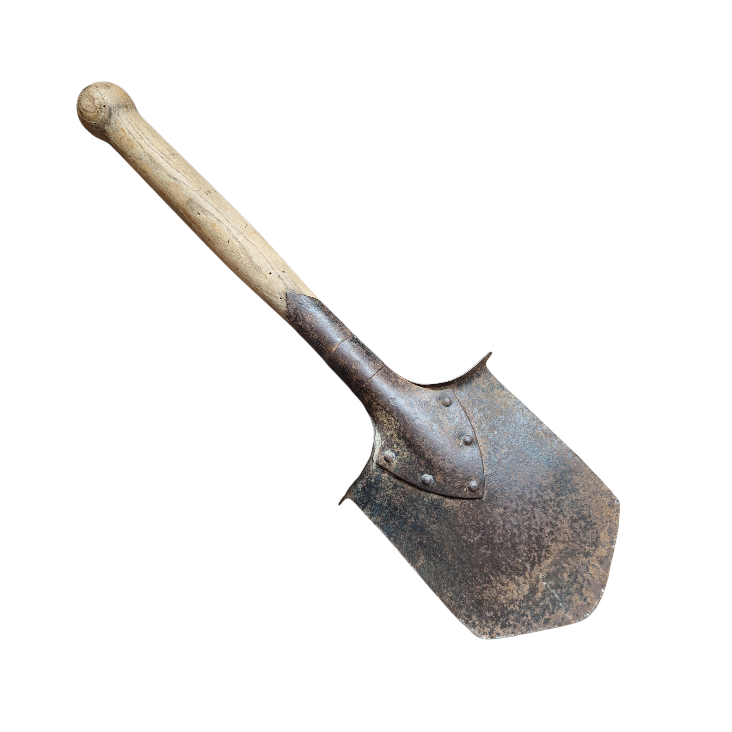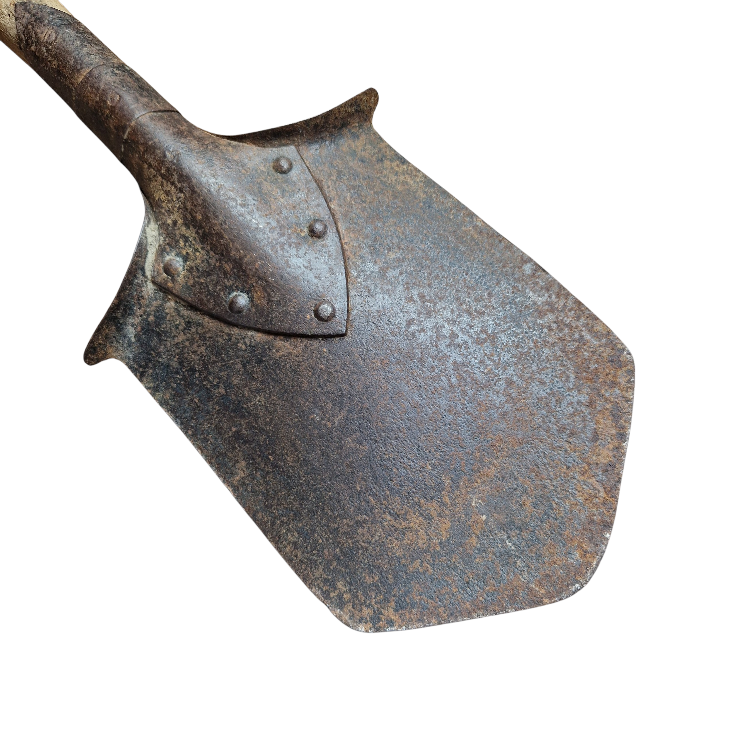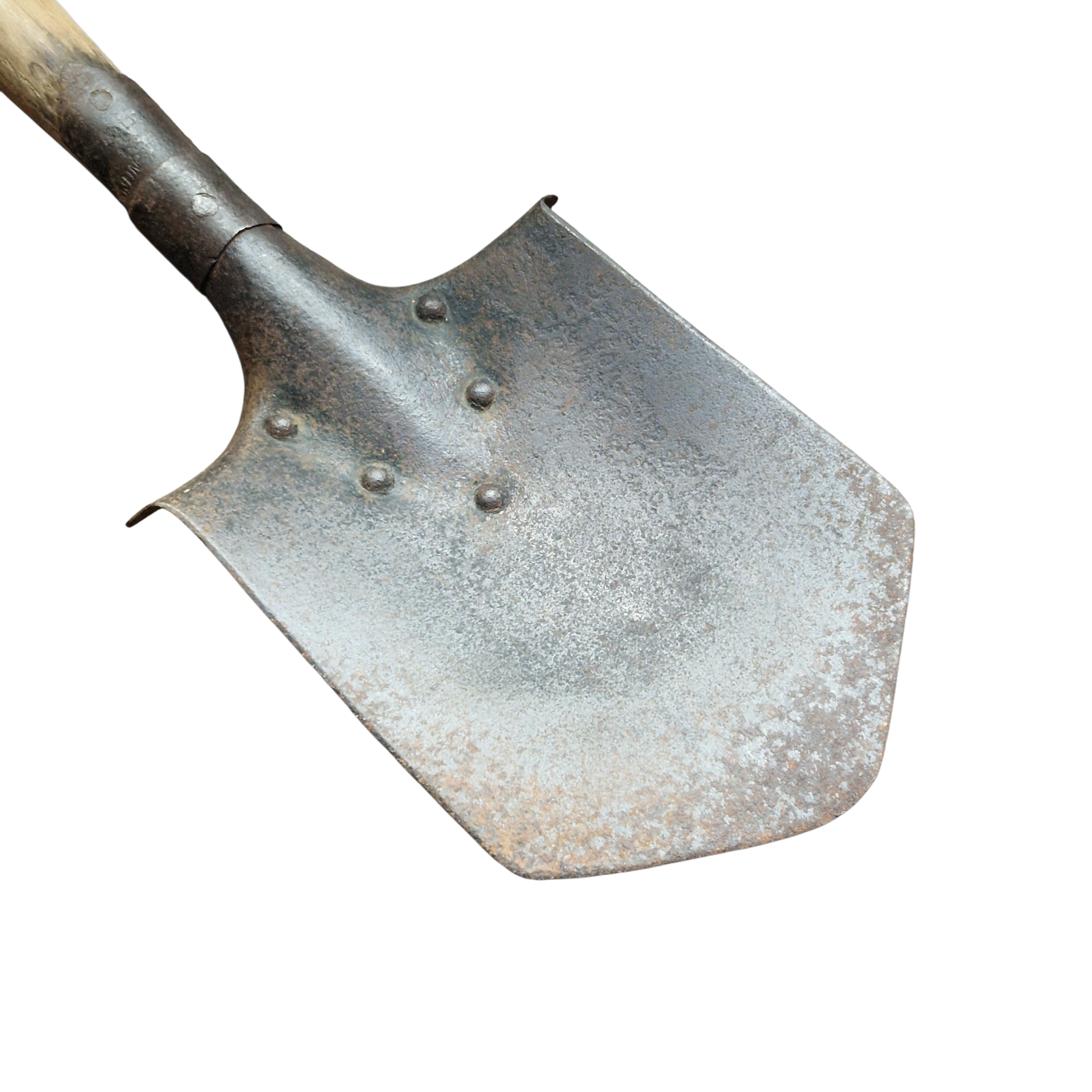Saperka Austro Węgry, okres I wojny światowej, bite sygnatury na mocowaniu trzonka, słabo czytelne, łopatka sprawna, bez luzów, trzonek nie popękany, bez wyszczerbień, naturalny stan łopatki, nic nie prostowane czy też czyszczone, lekko wygięty w epoce od kopania sztych/ostrze ale jest to niewielkie wygięcie, raczej bez znaczenia wizualnego.