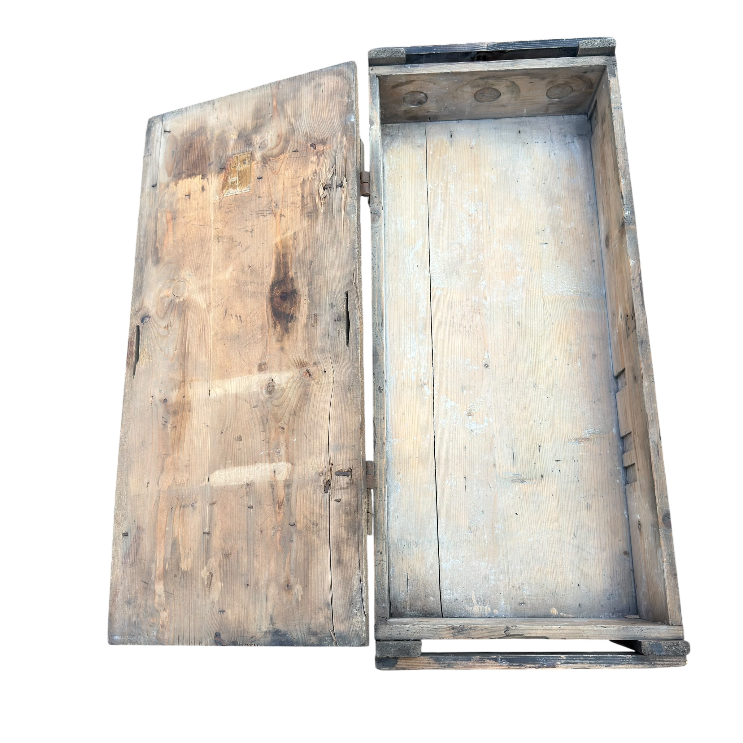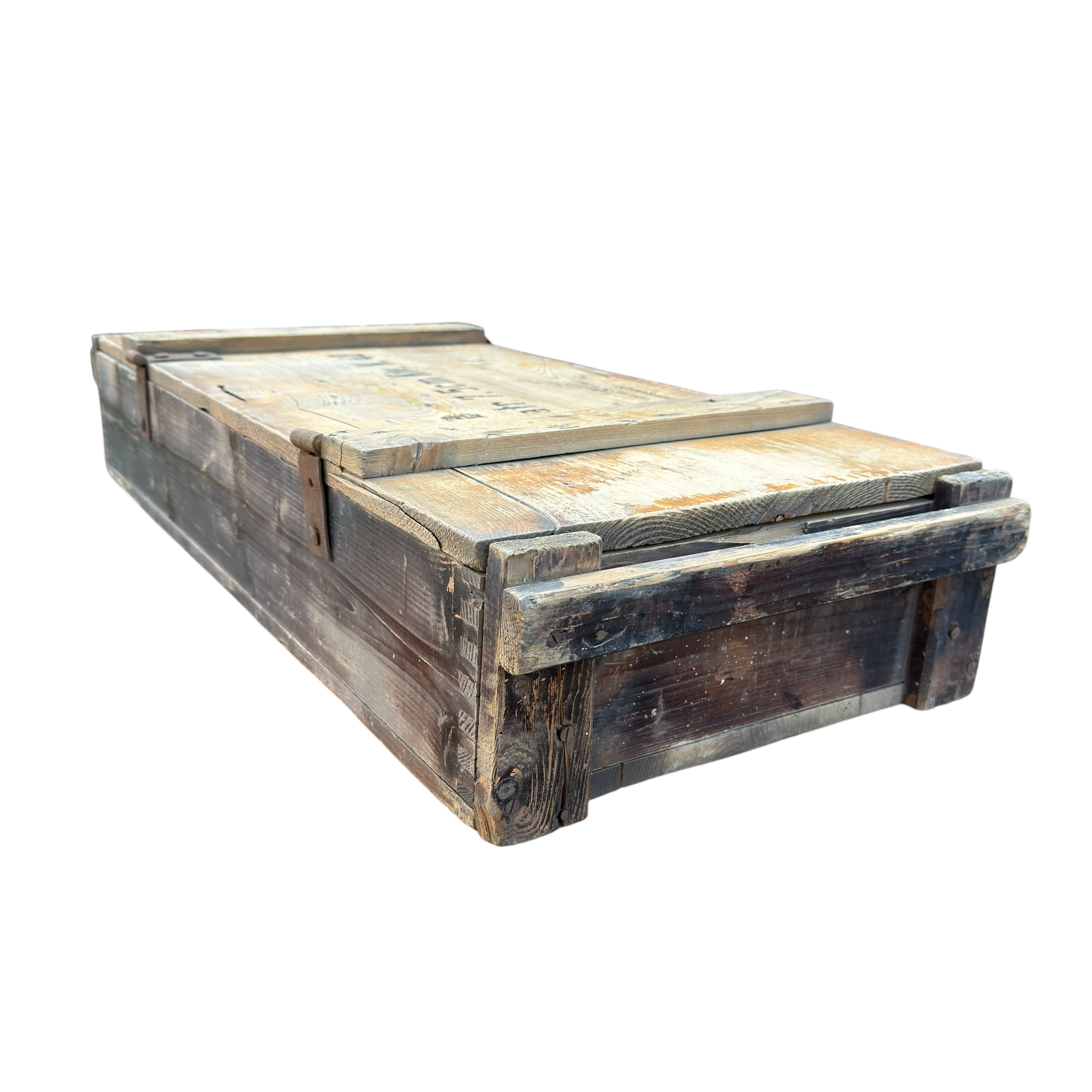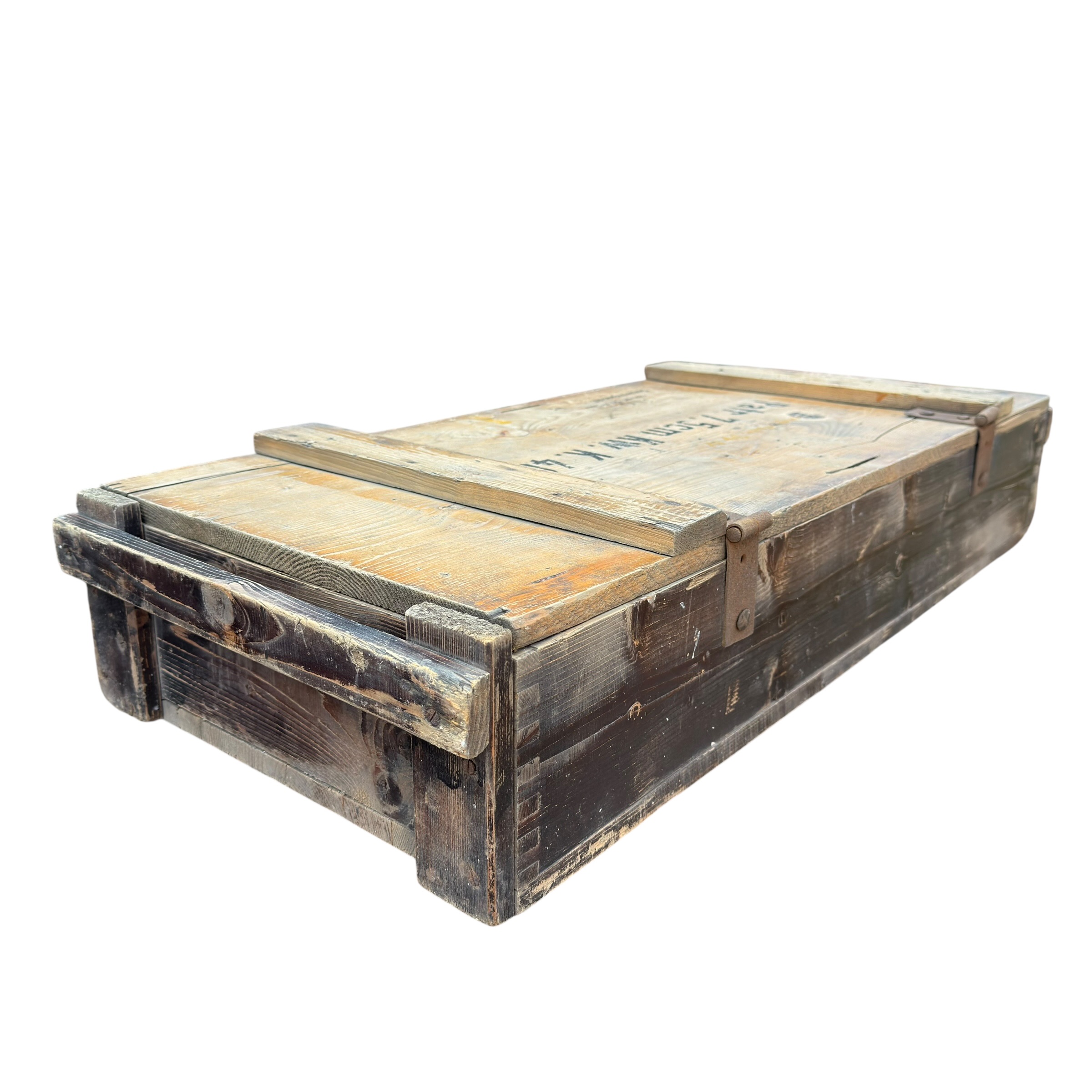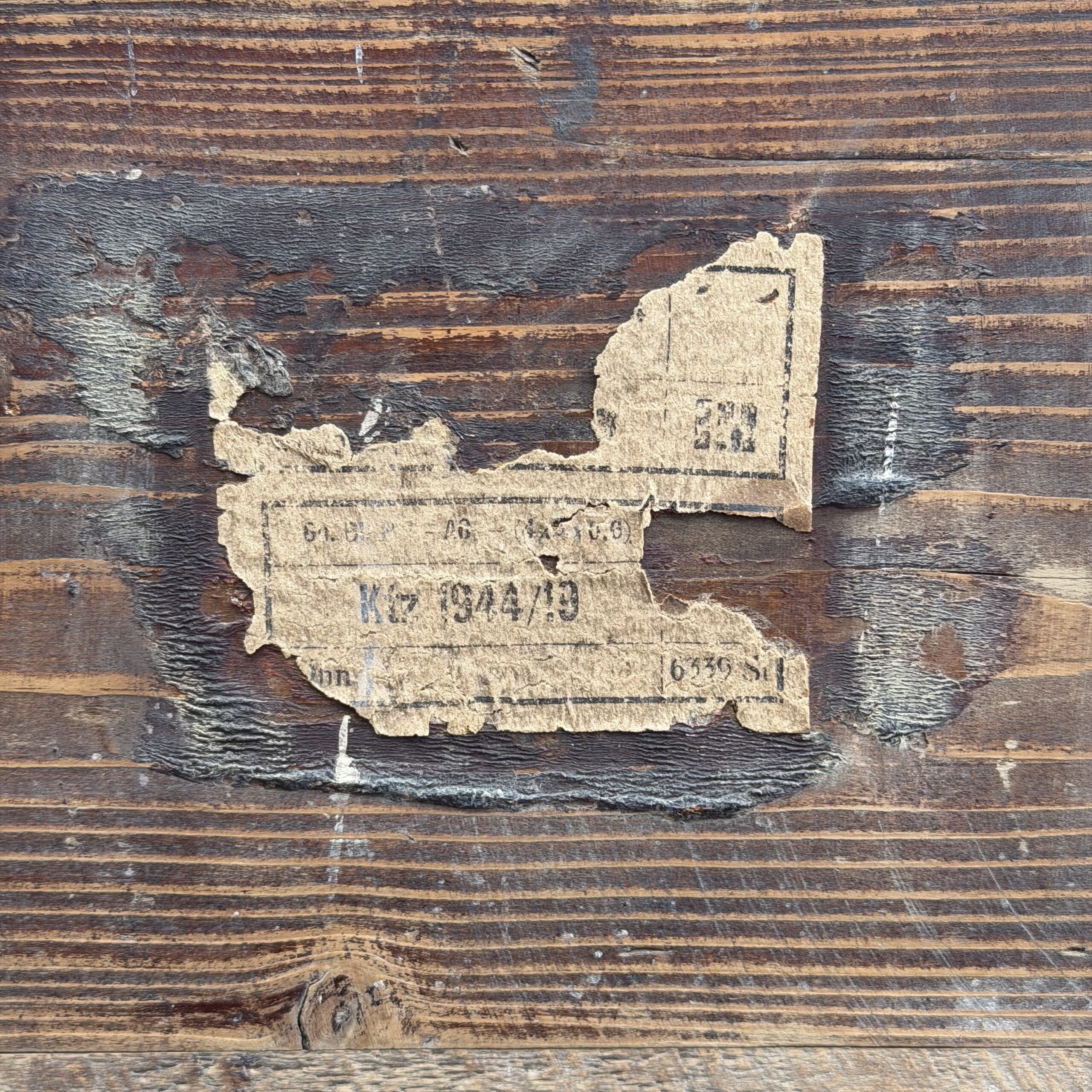 Niemiecka skrzynka na amunicję 7,5 cm KwK 40, używaną w czołgach PzKpfw IV a także w działach pancernych takich jak Sturmgeschutz III i Sturmgeschutz I, ta dokłądna skrzynka była przeznaczona dla Sprgr Patr 34 (Pocisk burzący) dobrze zachowane napisy na klapie, jak i karteczka od przodu i w środku, drewno mocne, zawiasy sprawne