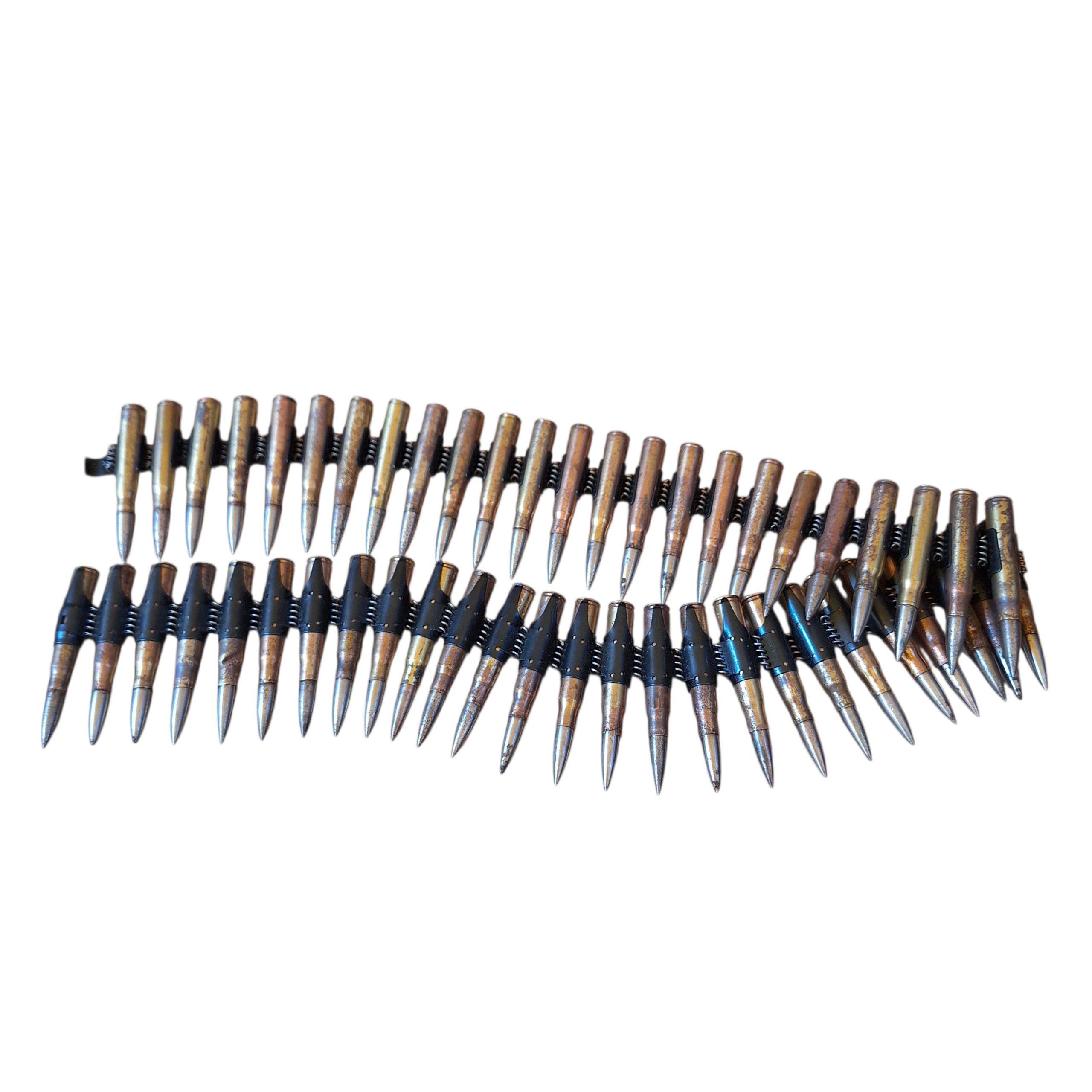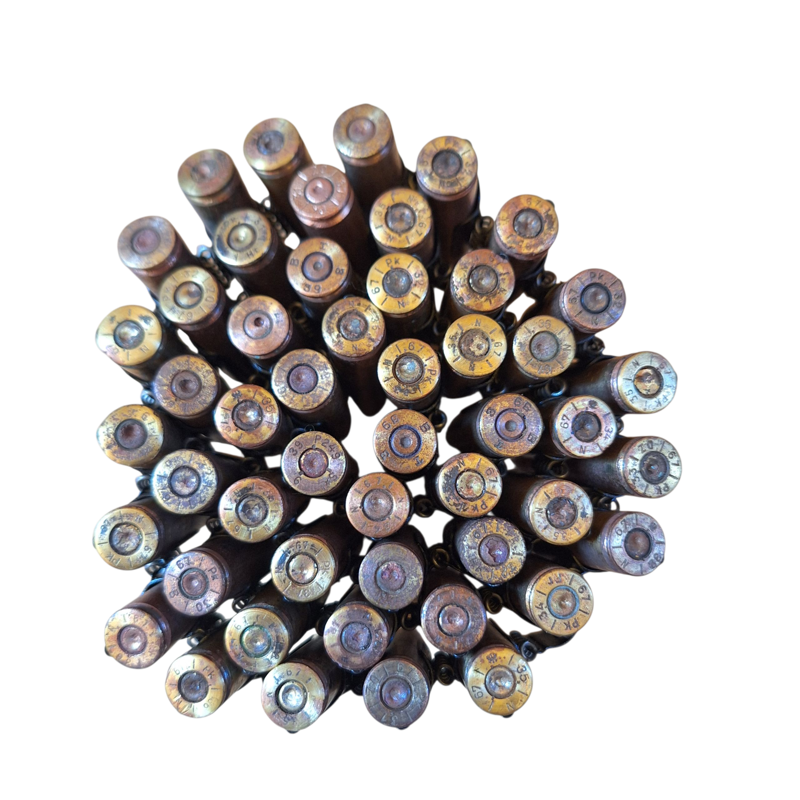 Taśma z Polskimi i Niemieckimi nabojami dekoracyjnymi, taśma niemiecka 1940 r, zdecydowana większość nabojów produkcji polskiej reszta niemiecka.
